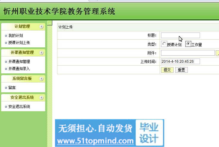 2、教师,要通过系统提交授课计划、工作量申请,给教研室主任留言、开课通知等。