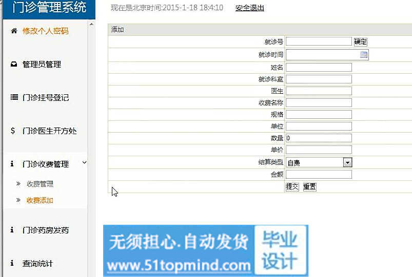 在整体分析医院各部门以及部门之间的实际工作业务的基础之上,结合管理信息系统开发的理念,逐一介绍开发门诊管理系统的步骤,详细地阐明了系统开发的目的、过程及预期效果。门诊管理系统的开发主要包括后台数据库SQL的建立和维护以及前端应用程序Java的开发两个方面。门诊管理系统主要包括:人员录入,病人信息管理,病例管理,挂号信息管理,就诊信息管理,票务信息管理等功能模块。通过对系统的主要功能模块进行了分析和设计,从而实践了项目管理在实际项目中的应用。