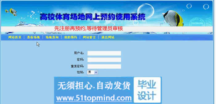 由于体育城场地预约系统是针对体育城场地预约用户要求用计算机对所需的场地信息进行查询和搜索的一种现代化软件。而主要包括浏览者对所需场地信息的查询与搜索,同时可进行注册;系统管理员掌握并记录,修改,查询场地信息,以及审核预约信息,以便管理系统的正常运行。