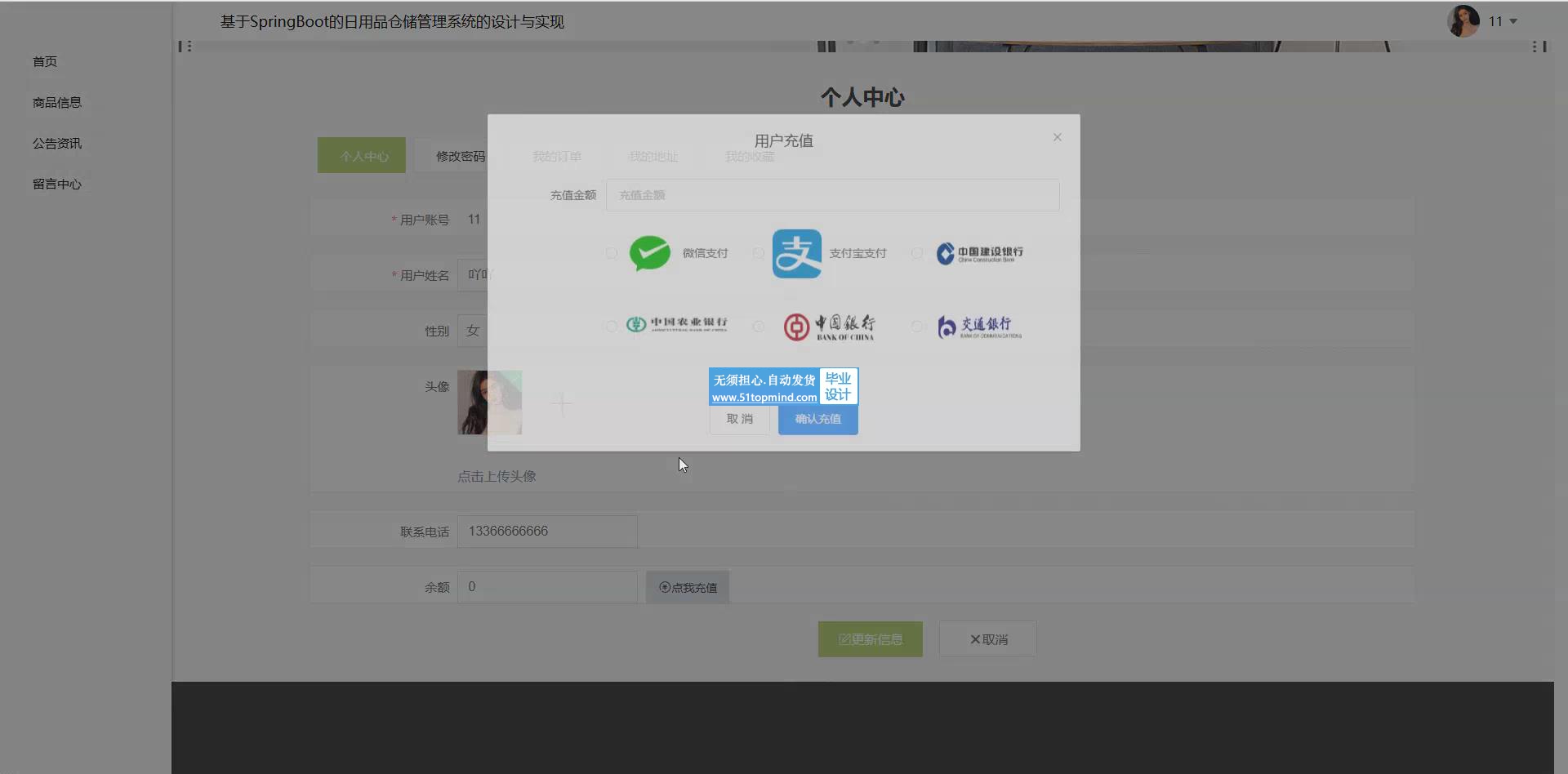 本研究的主要内容围绕日用品仓储管理系统的设计与实现展开,旨在解决传统仓储管理效率低下、数据不透明等问题。首先,通过需求分析明确系统的核心功能,包括商品分类管理、商品信息管理、入库管理、出库管理、库存监控及数据统计等。其次,基于SpringBoot框架设计系统架构,采用前后端分离模式,后端提供RESTful API,前端使用Vue.js实现交互界面,数据库选用MySQL存储数据。在功能实现上,重点开发了商品分类的多级管理、商品信息的增删改查、入库出库记录的实时更新、库存预警及盘点等功能,并通过数据统计模块生成可视化报表,为企业决策提供支持。此外,研究还涉及数据库表结构设计、系统性能优化及安全性测试,确保系统的高效性和可靠性。最后,通过实际应用验证系统的可行性和实用性,分析其在提升仓储管理效率、降低运营成本方面的效果,并展望未来引入人工智能、物联网等技术的可能性,为智能化仓储管理提供参考[6]。本系统采用SpringBoot框架作为后端开发基础,利用其简洁性、高效性和模块化设计思想,结合MySQL数据库进行数据存储与管理。在商品分类模块中,系统实现了对日用品的精细化分类,方便企业根据不同类型进行库存和销售统计。商品信息模块则详细记录了每个商品的基本信息,如名称、规格、价格等,为库存管理提供基础数据。入库信息模块记录了商品的进货信息,包括进货数量、进货时间等,确保库存数据的准确性。出库信息模块则跟踪了商品的销售和出库情况,为库存预警和补货决策提供依据。