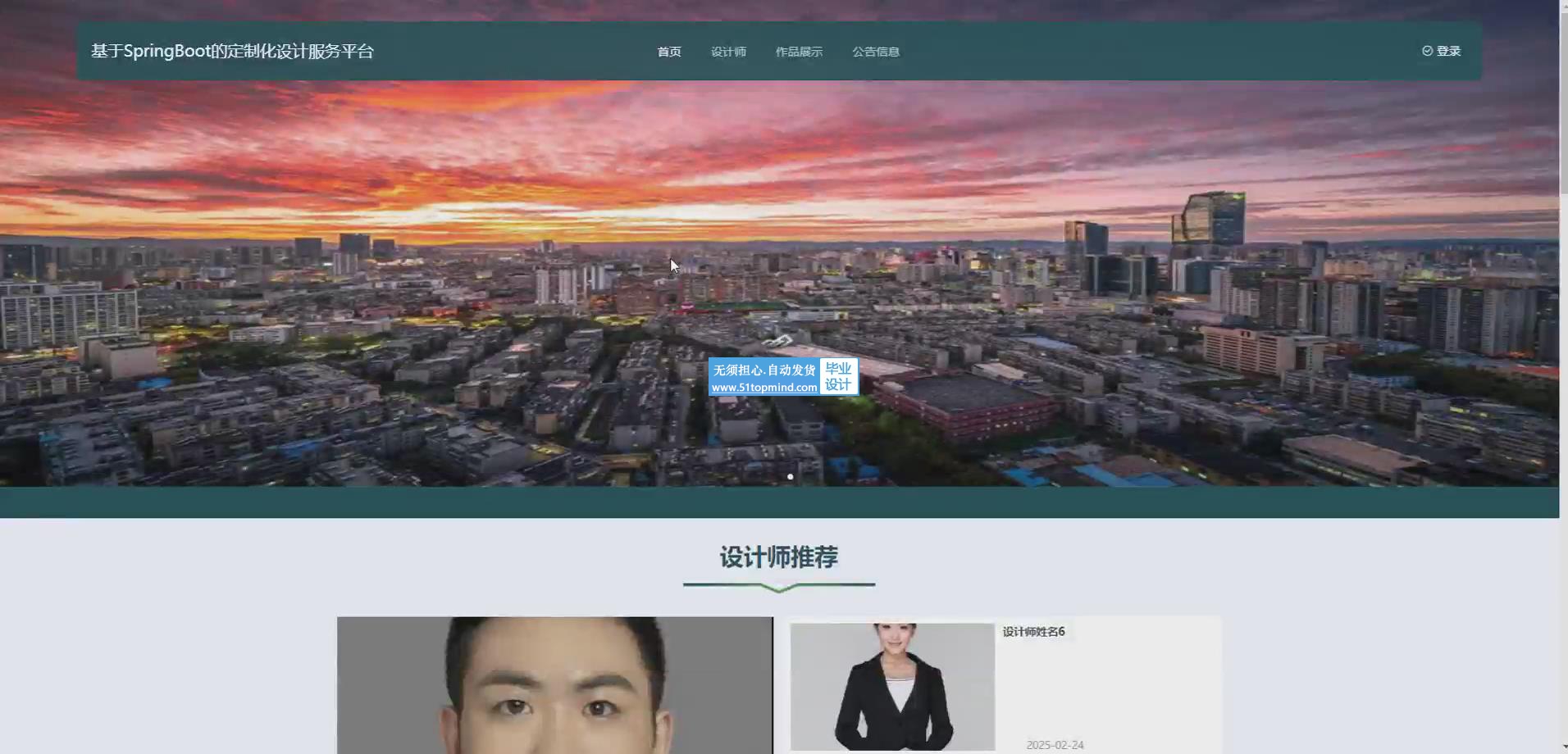 在本文中,以定制化设计服务平台作为研究对象,采用Spring Boot框架,开发了一款定制化设计服务平台应用软件。在该软件中,实现了用户、设计师、作品展示、我的订单、确认订单等功能。于是该系统将会给用户提供更多元、更个性化、更全面的服务。