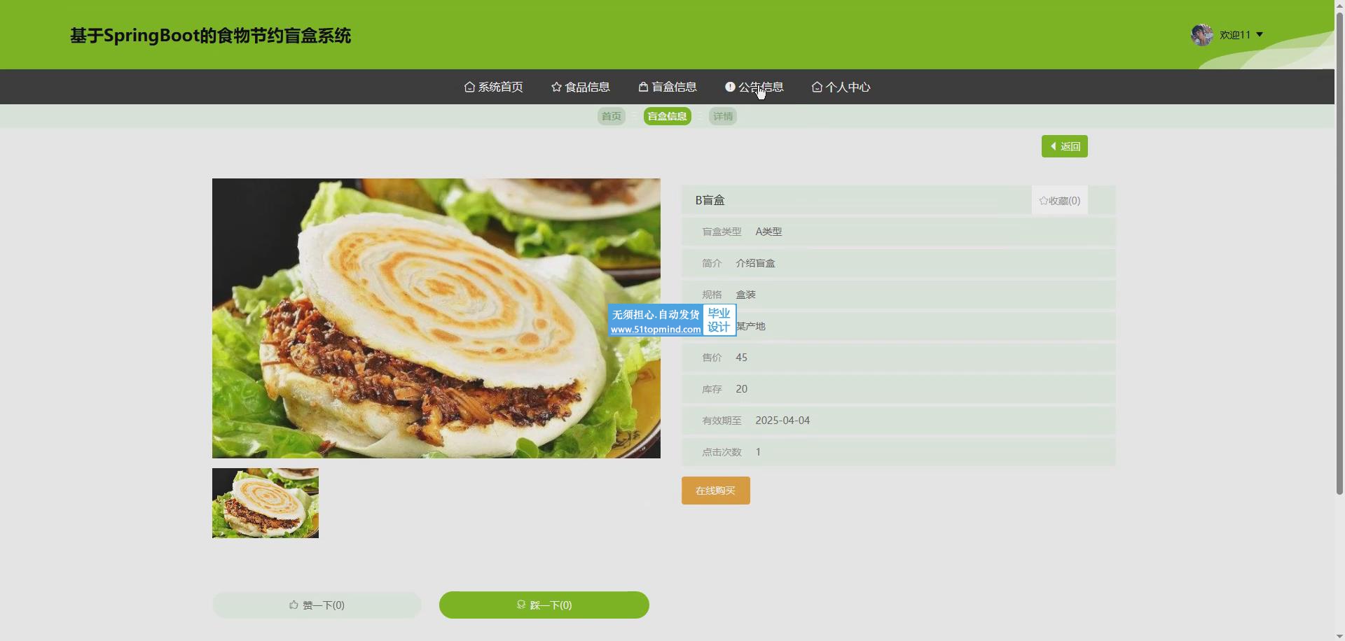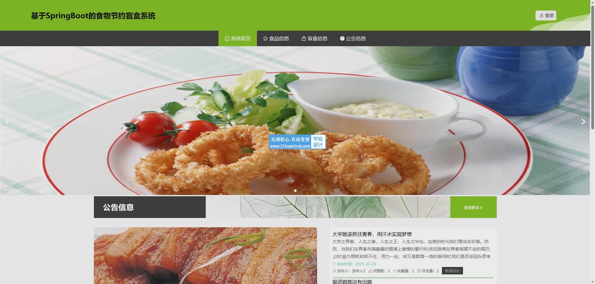 关键词:食物节约盲盒系统;Spring Boot框架;MySQL数据库