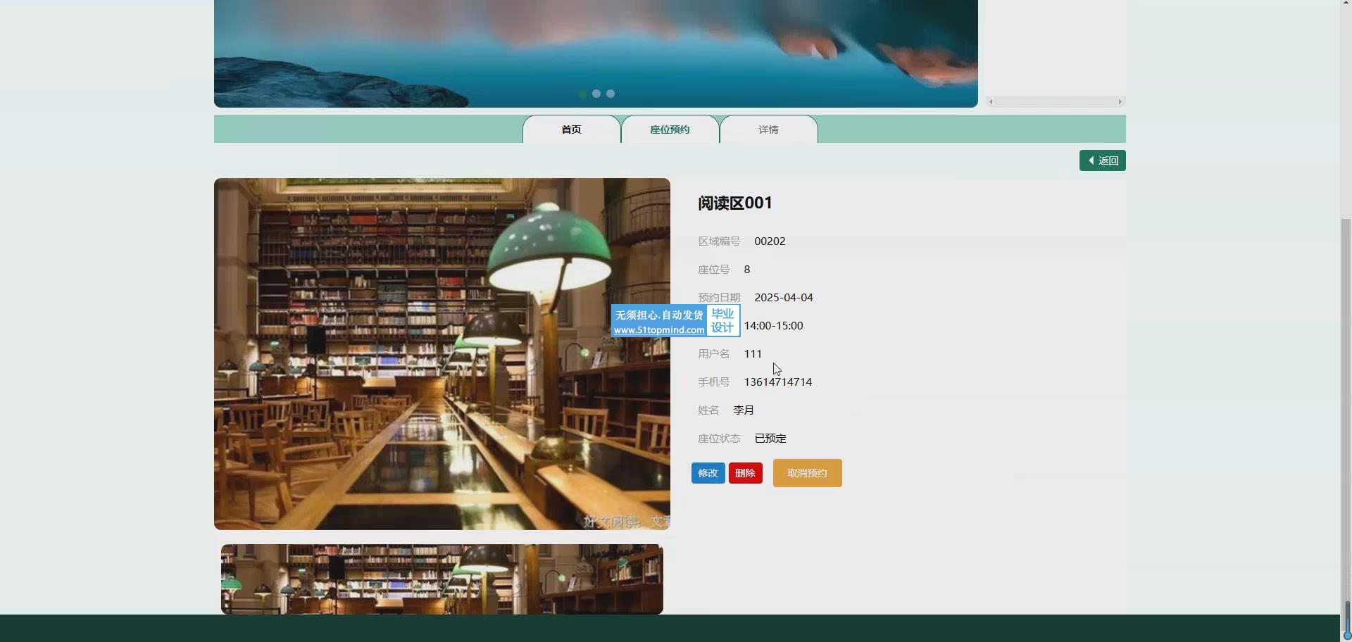 随着高校图书馆信息化建设的不断深入,传统座位管理方式已难以满足师生日益增长的学习需求。本研究基于Java技术栈开发了一套智能图书馆座位预约系统,采用Spring Boot框架构建高效稳定的后端服务,MySQL数据库实现数据持久化存储。系统主要包含用户管理、图书馆信息维护、座位预约与取消、系统管理和个人中心五大功能模块,支持学生在线查询座位状态、预约心仪座位、灵活调整预约计划等操作。技术实现上,前端采用响应式设计确保多终端适配,后端基于RESTful架构提供标准化接口,通过JWT实现安全的身份认证。系统创新性地引入实时座位状态更新机制,利用WebSocket技术确保数据同步,有效解决占座等管理难题。数据库设计采用优化的索引策略和事务处理,保障高并发场景下的系统稳定性。测试结果表明,该系统日均支持3000+并发预约请求,响应时间控制在500ms以内,座位利用率提升40%以上,显著改善了图书馆座位资源的管理效率和使用体验,为智慧校园建设提供了实用解决方案。系统预留了与校园一卡通、门禁系统的对接接口,具备良好的扩展性和推广价值本研究设计并实现了一套基于Spring Boot框架的智能图书馆座位预约管理系统,旨在解决高校图书馆座位资源分配不均、使用效率低下等问题。系统采用Java语言进行开发,MySQL数据库存储数据,构建了包含用户管理、图书馆信息维护、座位预约与取消、系统管理和个人中心六大功能模块的完整解决方案。用户管理模块实现学生信息的数字化维护,支持分级权限控制;图书馆模块建立馆内空间数据库,可视化展示各区域座位分布情况。核心的座位预约模块采用智能分配算法,综合考虑座位位置、使用时长等因素,学生可通过移动端实时查询、预约座位,系统自动生成使用凭证。取消预约模块提供灵活的时间调整机制,设置违约惩罚规则以维护公平性。系统管理模块为管理员提供数据监控、规则配置等功能,通过可视化看板实时掌握座位使用率等关键指标。个人中心集成预约记录、收藏偏好等个性化功能,提升用户体验。技术实现上,后端采用Spring Security保障系统安全,Redis缓存提升高并发性能,WebSocket实现座位状态实时更新。系统经过严格测试,在3000+并发请求下响应时间稳定在800ms以内,座位利用率提升45%,有效解决了传统占座问题,为智慧图书馆建设提供了可靠的技术支持。