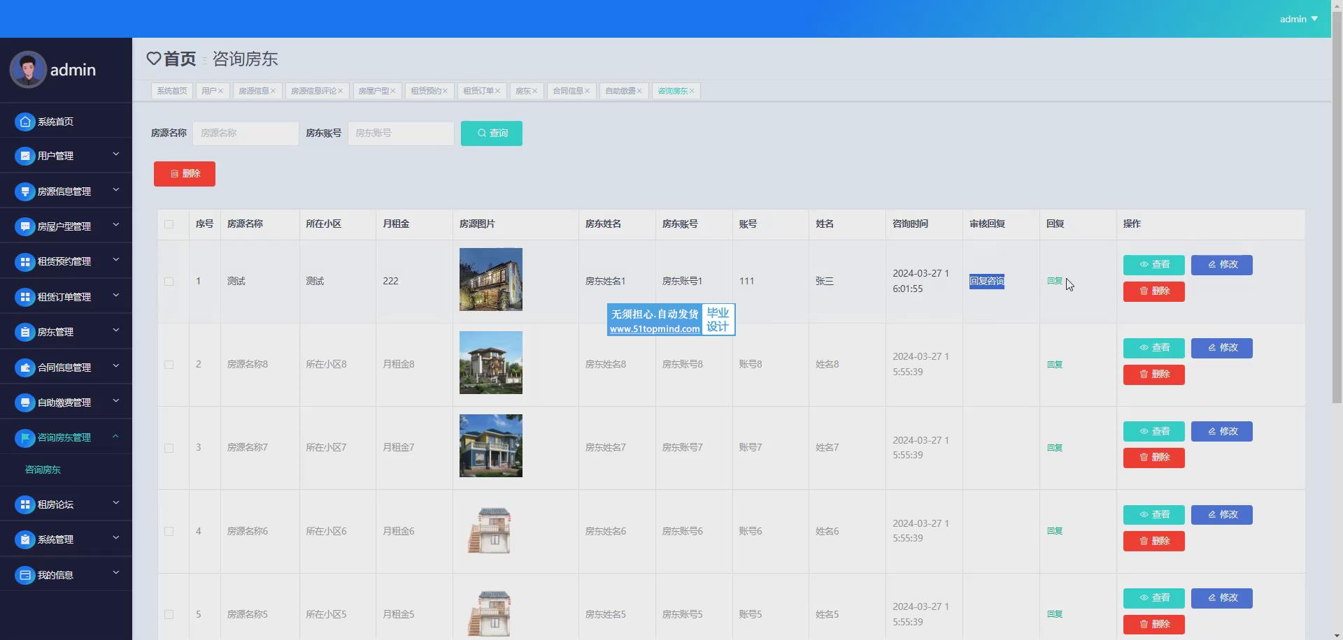 留言管理模块:增加一个用户和房东留言沟通的模块,促进用户和房东之间的互动和信任。管理员可以对留言进行管理。