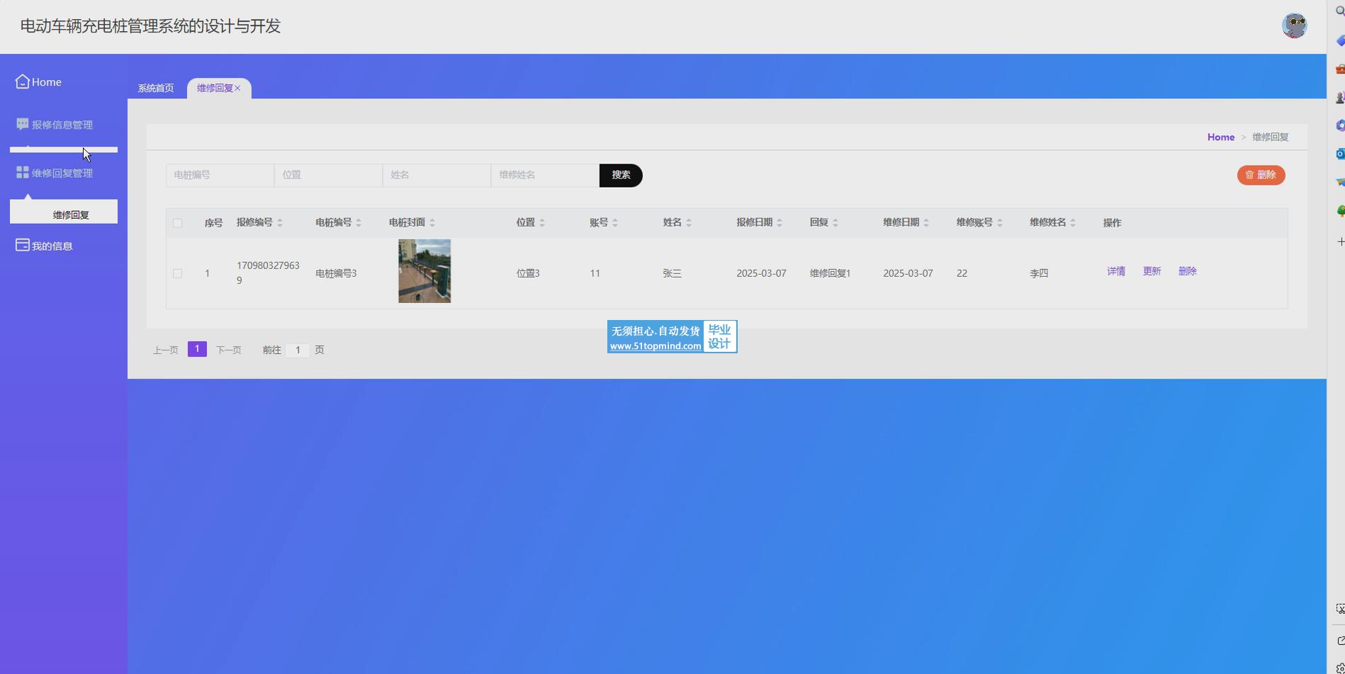 相较于传统电动车辆充电桩管理,本系统可以更方便地管理用户与维修员操作整个系统过程,提高了管理员工作效率和用户体验。用户可以在网上进行查看充电桩、论坛等,维修员可以在网上添加报修信息、维修回复等,他们都能够灵活地修改自己的个人信息,大大提高管理工作的效率。