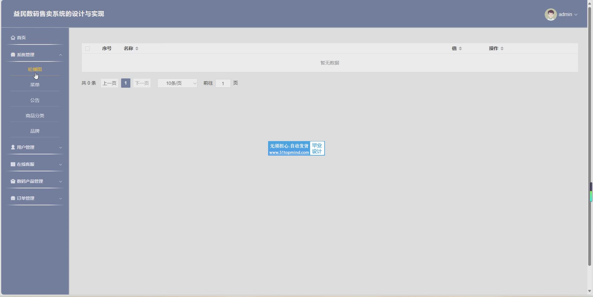 益民数码售卖系统共分为两个部分,一部分是面向用户的部分,包括:用户的注册登录,查看个人或者修改个人信息,查看公告,数码产品,购物车,在线客服,个人中心等功能。另一部分是系统的后台管理部分,包括对用户账号的新增、删除、修改等操作,以及查看个人信息,进行系统管理,在线客服,数码产品管理,订单管理等功能。