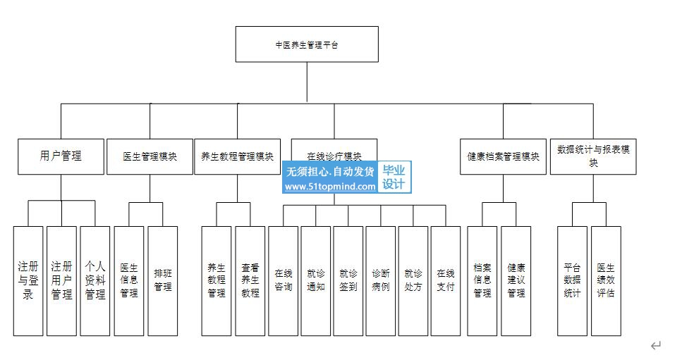 本系统旨在构建一个基于Web的中医养生管理平台,提供养生教程推送、健康咨询、医生预约、健康档案管理等服务,以提升中医养生的数字化水平,提高用户的健康管理能力。系统主要面向三类角色:系统管理员、医生和普通用户,每类角色对应不同的功能需求。