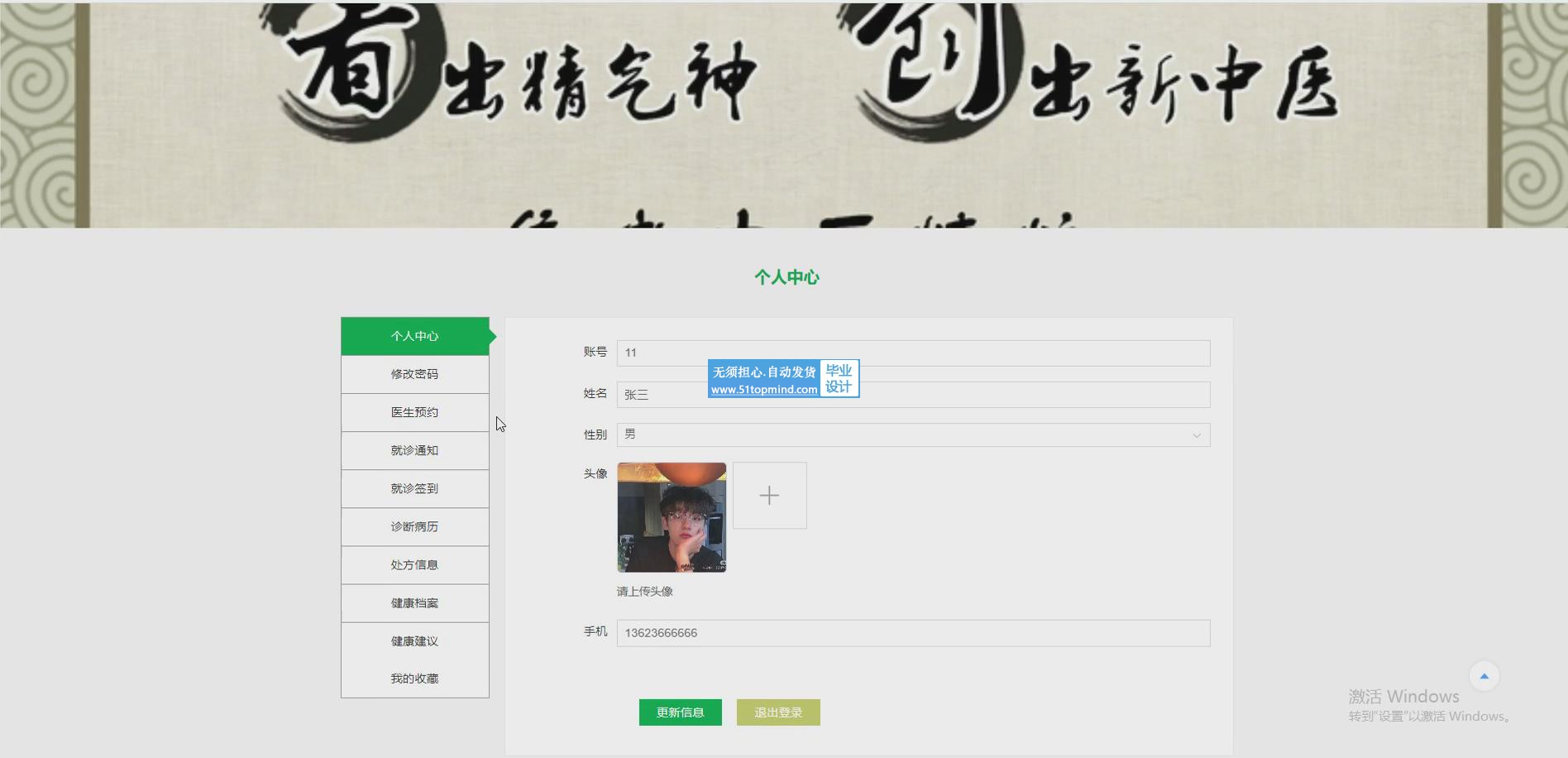 15、档案更新与查看:患者可随时查看和更新个人健康档案,系统管理人员可查看患者的健康档案,并提供专业的养生建议。