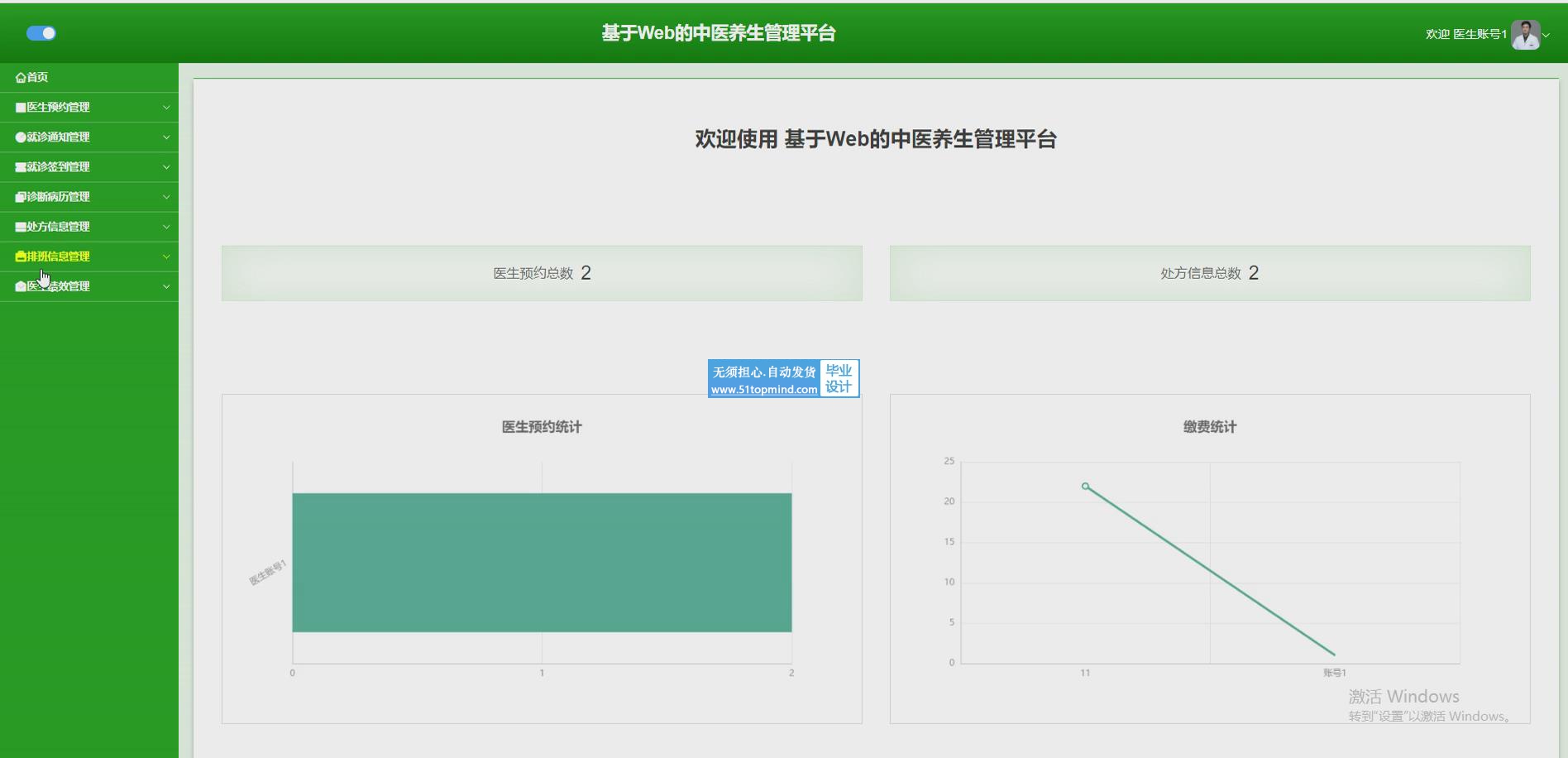 本研究基于Web技术,设计并实现了一套中医养生管理平台。系统采用SpringBoot+Vue架构,并以MySQL作为数据存储支持,提供注册用户、医生及系统管理员三类角色权限管理。系统涵盖多个核心功能模块,包括用户管理、中医医生管理、养生教程管理、预约管理、健康档案管理、在线诊疗、数据统计与报表分析以及支付结算等功能。通过这些模块,平台可以提供中医健康知识普及、在线诊疗、健康数据记录与分析等服务,提升中医养生的便捷性和智能化水平。