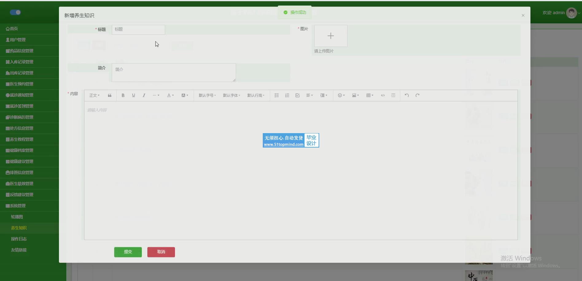 8、养生教程发布与编辑:管理员可以发布、编辑和删除中医养生相关文章,包括饮食调理、常见病症预防等。