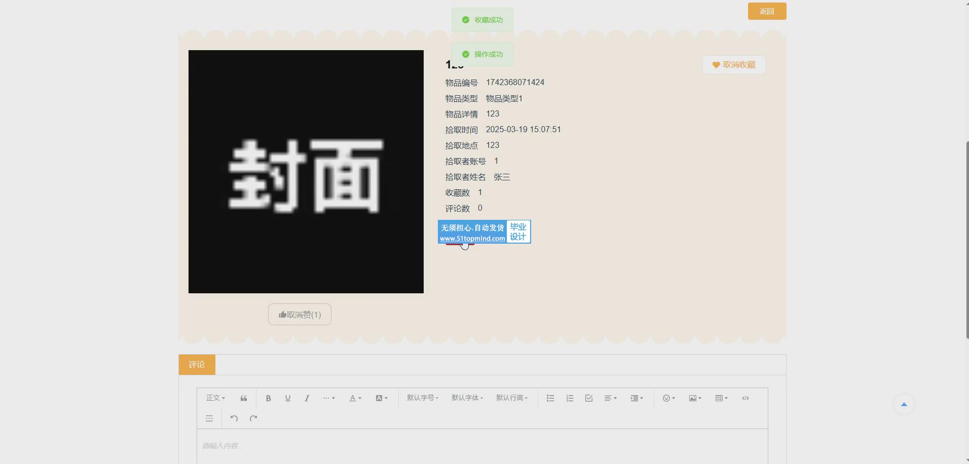 4. 失物招领模块,提供失物招领功能,学生可以发布丢失物品或捡到物品的信息,帮助失主找回物品。