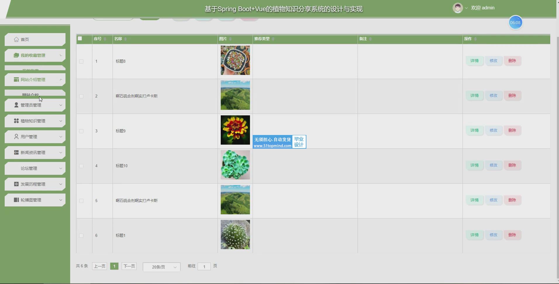 本系统的实现不仅极大地提升了植物知识分享的效率,还实现了知识的及时更新和实时共享。系统运行稳定,界面友好,操作简便,能够充分满足植物爱好者与专业人士的需求,为推动植物知识的普及和传播做出了积极贡献。