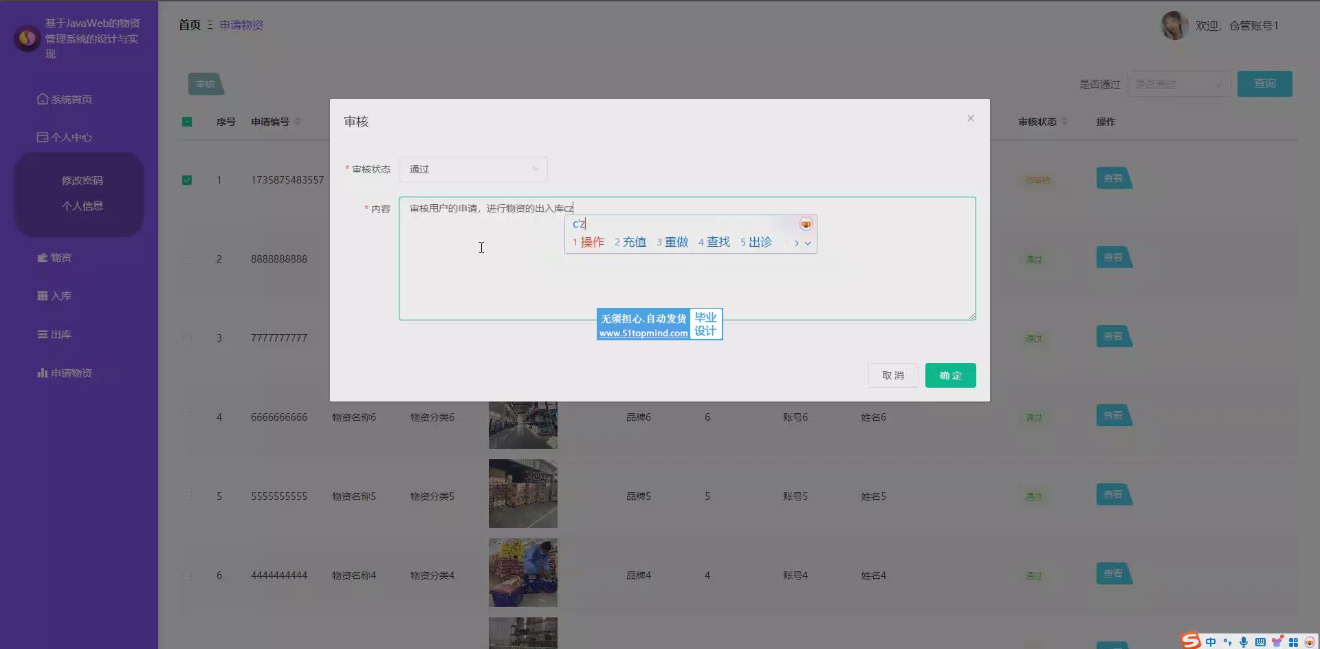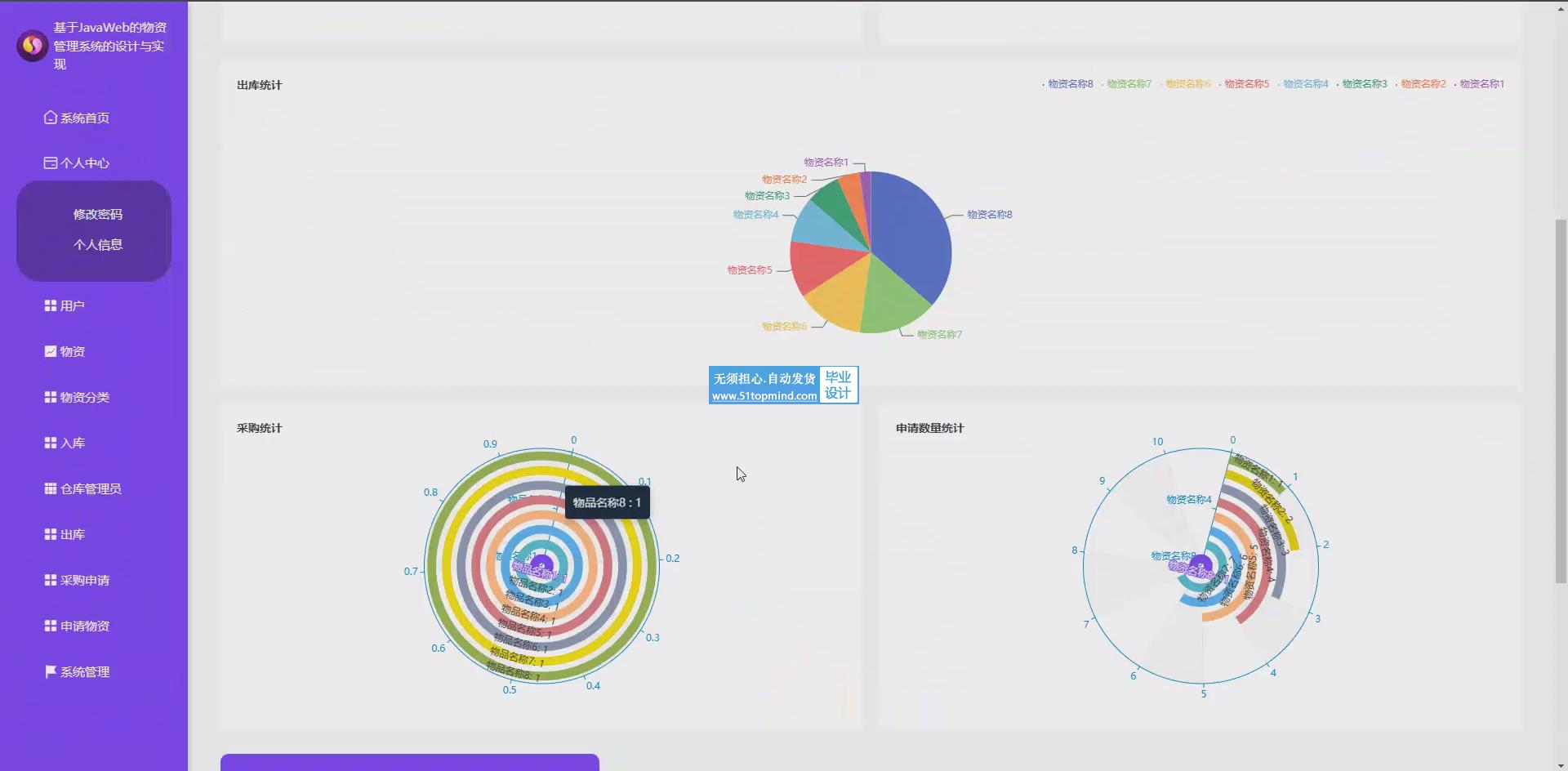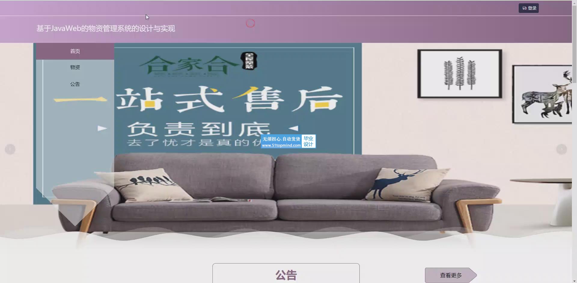物资管理系统提供了简洁明了的操作界面,包括首页、物资浏览、公告查看。这就意味着物资管理系统的设计可以比其他系统更为出色的能力,可以更高效的完成最新的物资、物资分类、入库、仓库管理员、出库、采购申请、申请物资等功能。