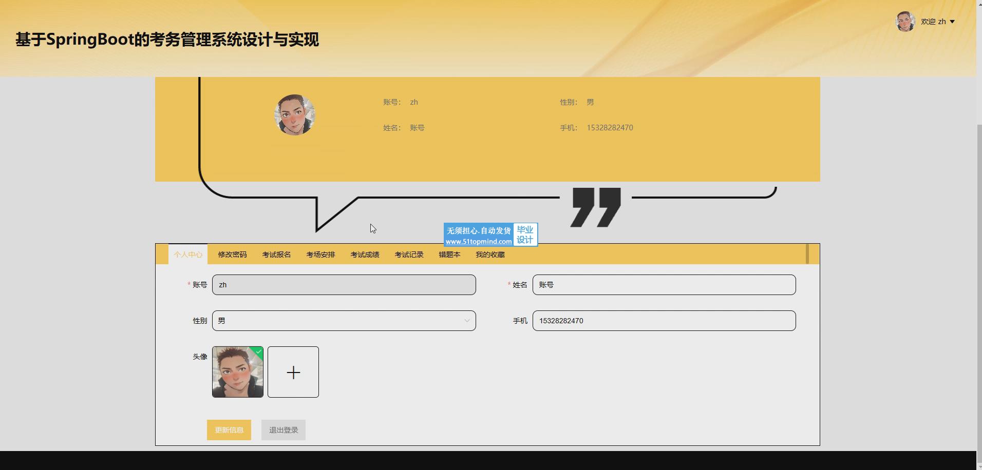 关键词: 考务管理系统;Java语言;SpringBoot框架;MySql数据库