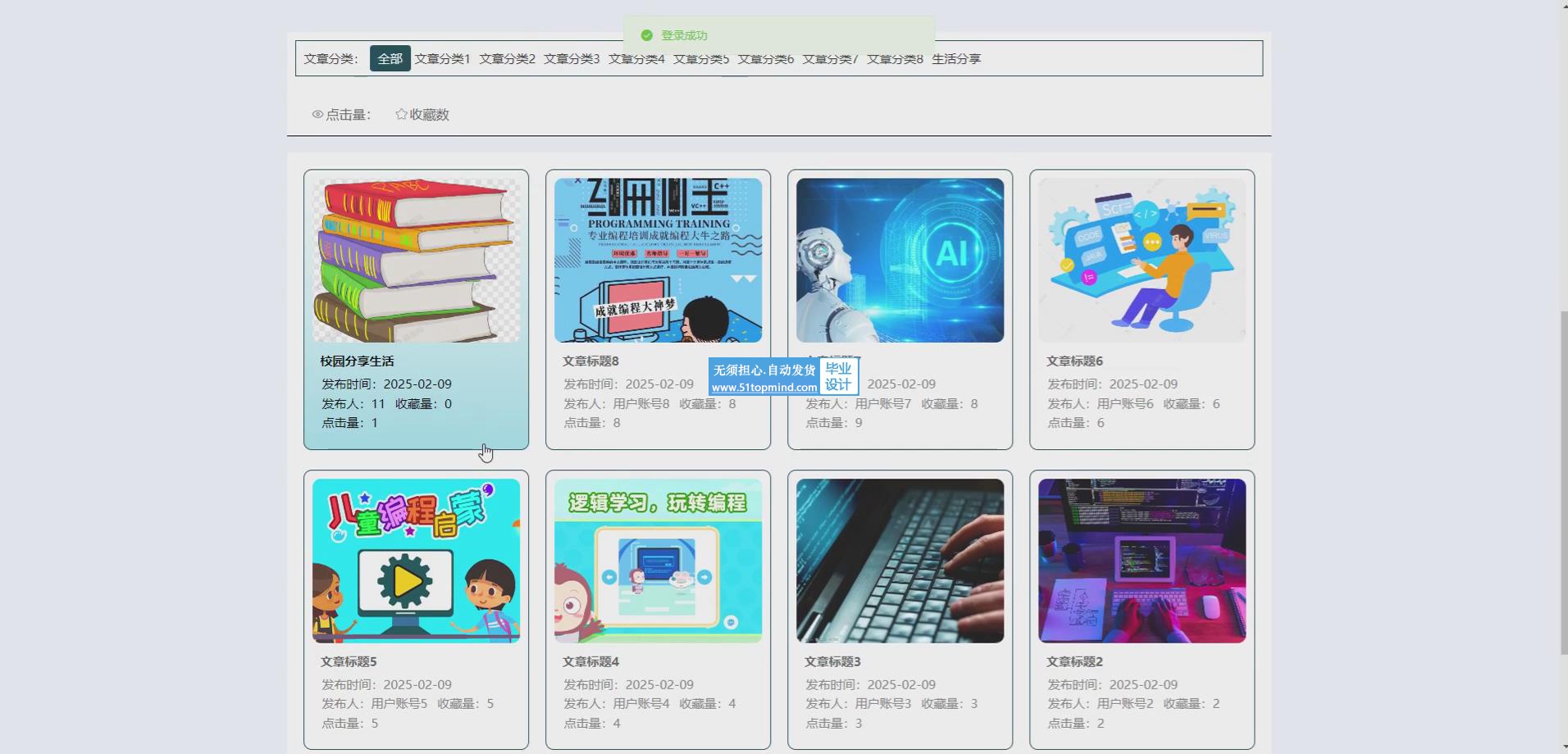 在项目实施过程中,我们采用了市场上广受认可的Spring Boot框架,基于B/S开发模式,运用Java开发语言和MySQL数据库,实现了系统的高内聚低耦合设计,最终顺利完成了校园论坛交流管理系统的开发工作。这款基于Spring Boot框架的校园论坛交流管理系统,为传统的校园论坛模式带来了革命性的改变,提供了高效、便捷且信息化的全新解决方案。同时,它也为我们后续对系统进行进一步优化升级指明了新的方向,为校园论坛交流建设注入了新的活力。