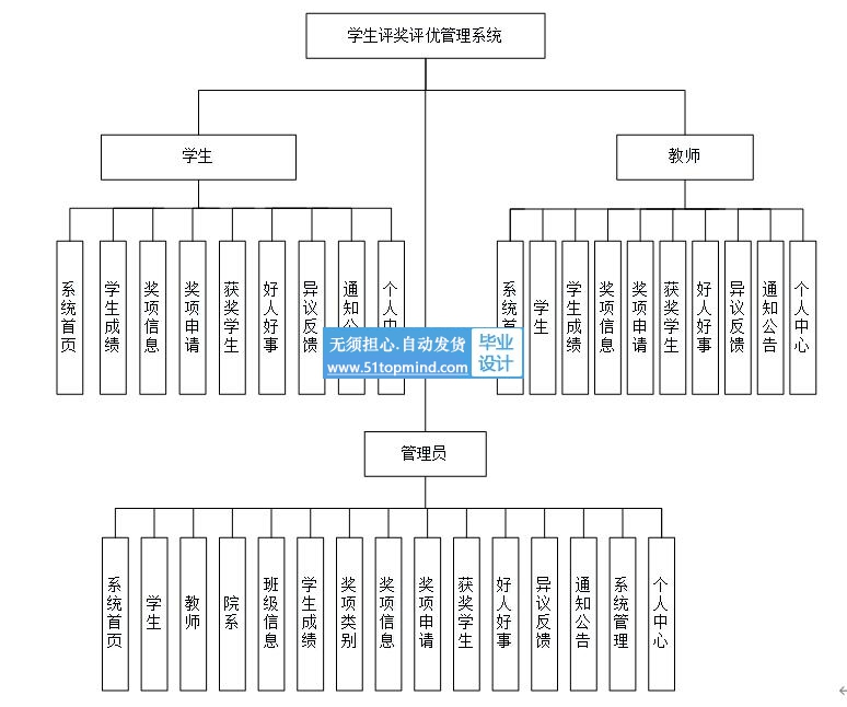 通过查阅资料,明确了学生评优评奖管理的主要流程,提出了系统需包含奖项信息管理、学生成绩录入、奖项申请及审核、公示异议反馈等核心功能模块。在系统设计过程中,结合实际业务逻辑,绘制了系统用例图、流程图、时序图等,为后续开发提供了清晰的技术路线。后端采用SpringBoot框架搭建,数据库使用MySQL进行数据存储,前后端通过接口交互,提升了系统整体的可维护性和响应效率。本人分别完成了管理员、学生和教师三种角色功能模块的开发,包括用户登录、数据管理、信息查询与操作等内容,确保系统各类用户的功能需求得到满足。数据库设计,针对不同模块的数据存储需求,合理规划并创建了奖项信息、学生成绩、教师信息、好人好事记录等多个数据表,确保系统在数据管理方面的完整性和规范性。系统开发完成后,通过黑盒测试的方法对主要功能进行了多轮测试,系统运行稳定,功能基本符合预期目标。
