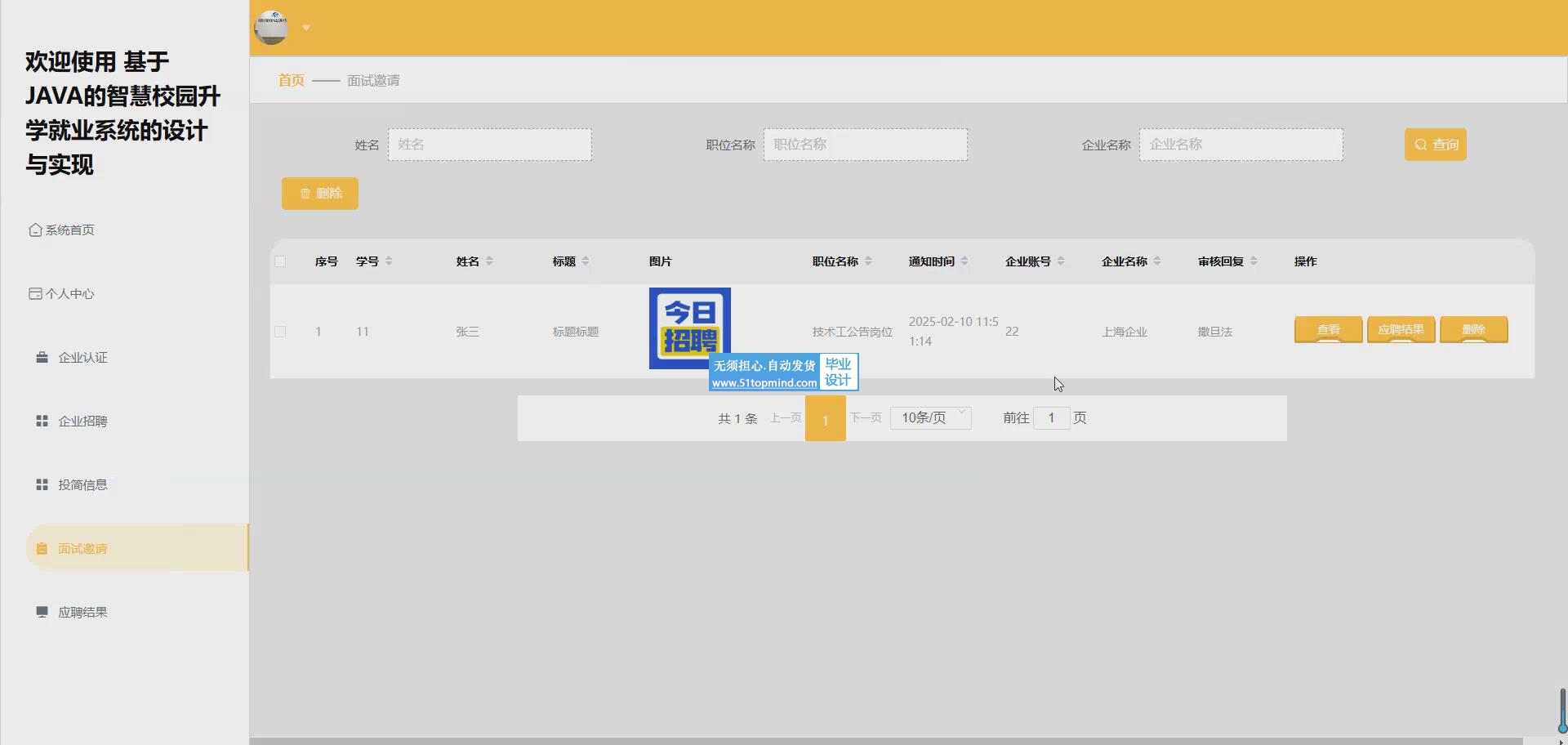 智慧校园升学就业系统的设计与实现,为学校、学生和企业搭建了一个便捷高效的沟通桥梁。一方面,帮助学校更精准地掌握学生升学就业动态,为学生提供更有针对性的指导和服务;另一方面,便于企业发布招聘信息,筛选合适人才,提高招聘效率。同时,学生能够借助系统提升求职能力,获取更多职业发展机会,促进教育与就业的有效衔接,具有重要的现实意义。