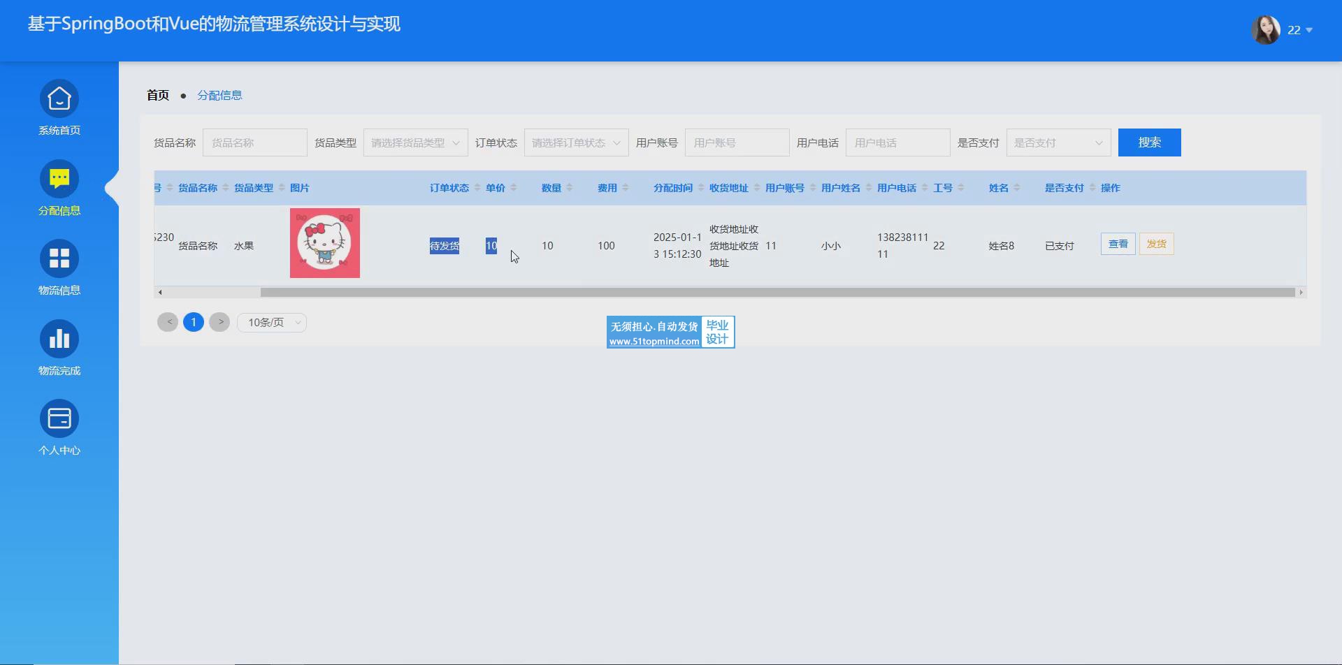 关 键 词:物流管理系统;java语言;mysql数据库;前后端分离