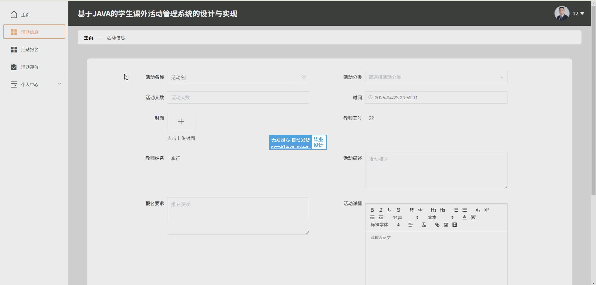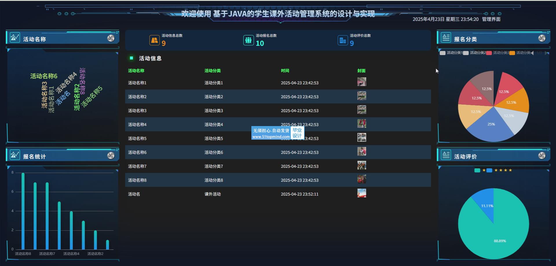 关键词:JAVA;课外活动管理系统;协同过滤算法;前后端分离