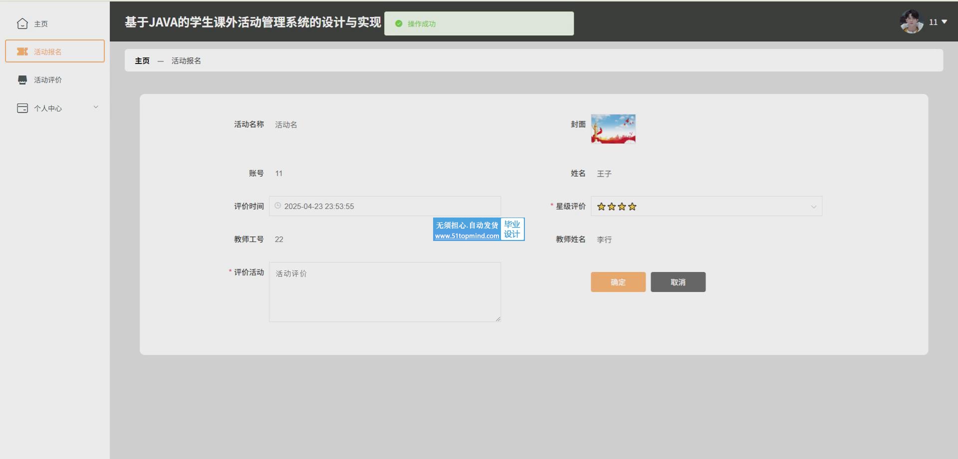 本文着重探讨的是依托JAVA所构建的学生课外活动管理系统,涵盖其设计层面以及具体的实现路径。伴随高校教育领域信息化进程的逐步推进,传统的课外活动管理模式所存在的诸多弊端愈发显著,在这样的背景之下,该管理系统便顺势而生。文中细致讲述在系统开发过程当中所牵涉到的B/S框架、MySQL数据库以及Java相关技术等方面的内容,并且较为详尽地剖析学生、教师以及管理员这三方各自不同的功能诉求,同时也对系统自身的性能要求、运作流程以及具体用例展开分析。在系统设计阶段,明确采用前后端分离的这种架构模式,进而规划设计出较为合理的功能架构以及与之匹配的数据库。借助Java、Vue.js、SpringBoot等一系列技术手段,将各个功能模块一一实现,随后还开展全方位的测试工作,其中包含对功能、性能以及安全性等多方面的测试。测试所得到的结果显示,该系统在功能方面能够正常运转,其性能表现良好,而且具备较高的安全可靠性。展望未来,可通过引入深度学习模型来对推荐算法加以优化,着手开发移动端APP,以及推动与其他系统进行集成拓展等多种途径,以此来让这个系统得到更进一步的完善。该系统得以成功落地实现,这无疑为高校开展课外活动管理工作贡献一种高效且智能的应对方案,有力地推动教育信息化发展的进程。