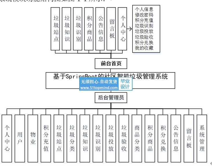 本研究旨在开发一套基于Spring Boot的社区智能垃圾管理系统,以提升社区垃圾管理的效率和智能化水平。主要内容包括系统的需求分析、设计与实现。首先,通过对社区垃圾管理现状的调研,明确系统需要解决的关键问题,如垃圾分类不规范、居民参与度低、垃圾处理效率不高以及信息管理混乱等。基于这些需求,系统采用Spring Boot框架进行开发,结合MySQL数据库实现数据存储与管理。系统功能模块涵盖垃圾投放、分类、识别、积分管理、公告发布、智能客服以及垃圾站点管理等。通过垃圾识别模块利用图像识别技术帮助居民准确分类垃圾;积分管理模块则通过激励机制提高居民参与度。系统还为物业管理人员提供后台管理功能,实现数据统计与分析,优化垃圾处理流程。通过系统的开发与测试,验证其在社区垃圾管理中的实际应用效果,为社区可持续发展提供技术支持。