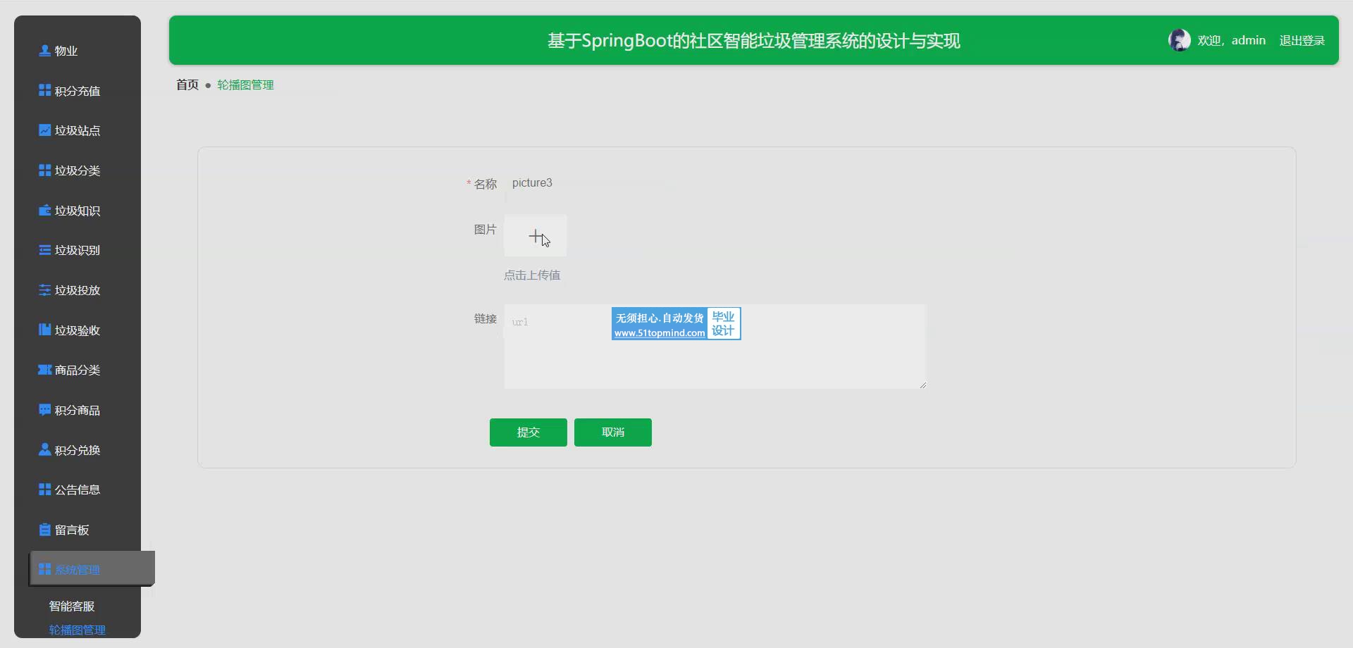 随着城市化进程的加速,社区垃圾管理问题日益凸显。本项目基于Spring Boot框架,采用Java语言开发,结合MySQL数据库,构建了一套社区智能垃圾管理系统。该系统通过模块化设计,涵盖了垃圾投放、分类、识别、验收以及积分管理等核心功能。用户可通过前端界面便捷地进行垃圾投放登记和分类查询,系统利用垃圾知识库为用户提供准确的分类指导。系统支持积分激励机制,鼓励居民积极参与垃圾分类,积分可用于兑换商品或服务。后台管理模块则为物业和管理人员提供数据统计、公告发布等功能,助力社区高效管理垃圾。通过智能化手段,本系统旨在提升社区垃圾处理效率,改善居住环境,推动社区可持续发展。