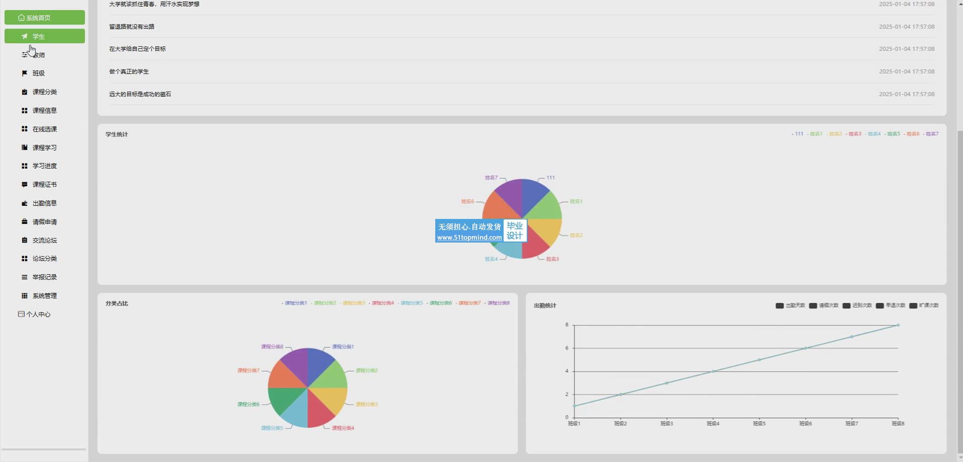 查勤管理系统的核心在于构建一个全面、高效的教育管理平台,旨在提升学校的教学质量和管理效率。系统功能涵盖了学生、教师、班级管理等多个方面,为学校提供了从基础信息管理到教学活动监控的全方位解决方案。通过学生和教师的信息管理,系统能够确保用户数据的准确性和安全性,为后续的教育活动提供坚实的基础。班级和课程分类管理功能则有助于学校更好地组织教学资源,提高教学效率。在线选课和课程学习功能为学生提供了自主学习的便利,使他们能够根据自己的兴趣和需求选择课程,系统能够实时跟踪学生的学习进度,为教师提供反馈。课程证书功能则为学生的学习成果提供认证,增强了学习的成就感。出勤信息和请假申请管理功能则确保了教学活动的有序进行,通过实时监控学生的出勤情况,及时处理请假申请,提高了教学管理的透明度和公正性。交流论坛和论坛分类功能为师生提供了一个互动交流的平台,促进了知识的分享和学术讨论。举报记录功能则有助于维护论坛的秩序,确保交流环境的健康。系统管理功能则为管理员提供了强大的后台支持,包括用户管理、数据备份、系统更新等,确保系统的稳定运行。整体而言,查勤管理系统不仅提升了学校的管理效率,还为师生提供了更加便捷、高效的学习和工作环境,推动了教育信息化的发展。通过这些功能的集成,系统能够满足学校在教学管理、学生学习和教师教学等方面的需求,为教育改革和创新提供了有力的支持。