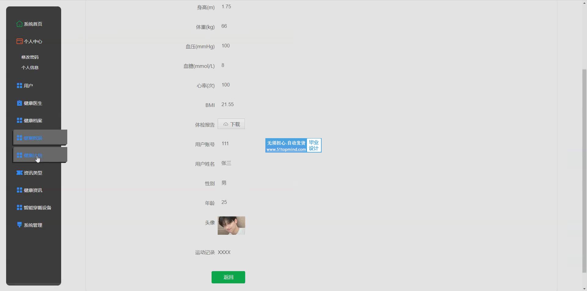 本研究开发一套基于SpringBoot与Vue.js的健康管理系统,以满足现代健康管理的多样化需求。系统的核心功能围绕用户健康管理的全生命周期展开。系统首页为用户提供直观的导航和关键信息展示,帮助用户快速了解系统功能和自身健康管理状态。个人中心则为用户提供个性化的操作空间,用户可以在此管理个人信息、查看健康报告和接收健康建议。用户模块实现了用户注册、登录和权限管理,确保数据安全和隐私保护。健康医生模块允许用户与专业医生进行在线沟通,获取专业的健康咨询和建议。健康档案功能为用户创建和维护详细的健康档案,记录个人健康历史、体检结果和慢性病管理信息。健康数据模块则负责收集和分析用户的日常健康数据,如运动步数、睡眠质量、心率等,并通过可视化图表展示数据趋势。健康计划模块为用户提供个性化的健康管理方案,帮助用户设定健康目标并跟踪进度。资讯类型和健康资讯模块为用户提供丰富的健康知识,涵盖疾病预防、营养建议、运动指导等内容,帮助用户提升健康意识。智能穿戴设备模块支持与各类智能设备的连接,自动同步健康数据,提升用户体验。系统管理模块为管理员提供后台管理功能,包括用户管理、数据备份、权限设置等,确保系统的高效运行和数据安全。通过这些功能的有机结合,本系统致力于为用户提供一个全面、便捷、高效的健康管理平台。