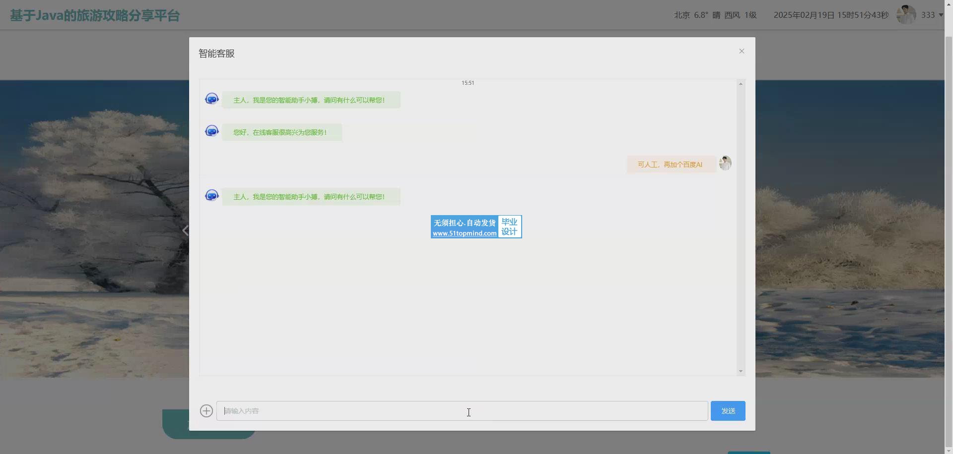 随着人们生活水平的提高和旅游观念的转变,旅游已成为一种重要的生活方式。然而,面对众多的旅游目的地和复杂的行程规划,游客往往需要大量的信息支持。为此,我们开发了一款基于Java语言、Spring Boot框架和MySQL数据库的旅游攻略分享平台。该平台旨在为用户提供一个便捷、高效、个性化的旅游信息交流空间。通过Java语言的强大功能和Spring Boot框架的高效开发特性,平台实现了用户注册、登录、攻略发布、评论互动等核心功能,同时利用MySQL数据库确保数据的稳定存储和快速检索。平台界面简洁友好,操作流程直观易懂,无论是资深旅行者还是初次出游的游客,都能轻松上手。通过这款旅游攻略分享平台,我们希望能够为用户提供一个全面、可靠的旅行信息资源库,让每一次旅行都能更加轻松、愉快。