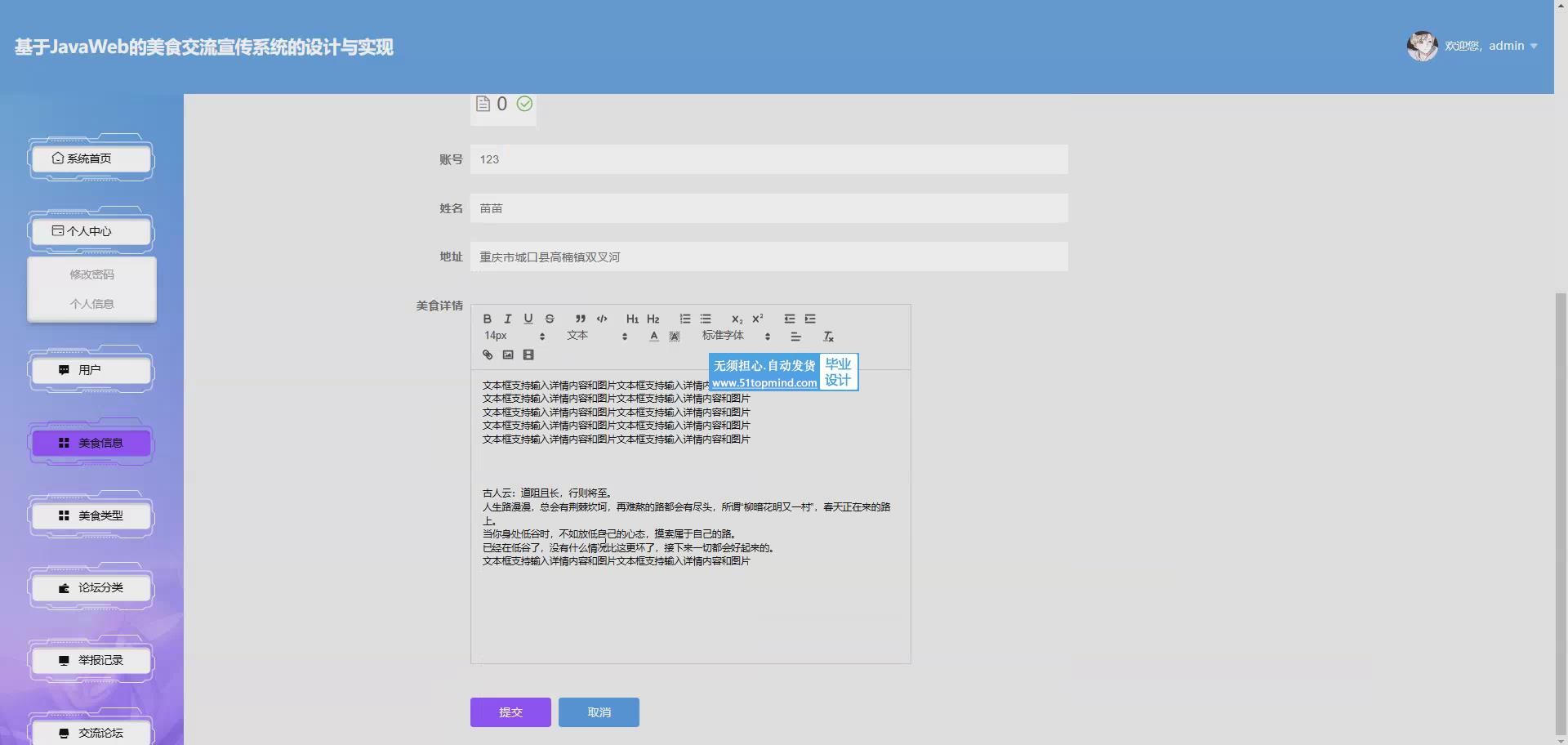 基于springboot框架的美食交流宣传系统为当前传统管理模式提供了一个高效、便捷、信息化的解决方案,这为后期美食交流宣传系统的优化提供了新的方向。