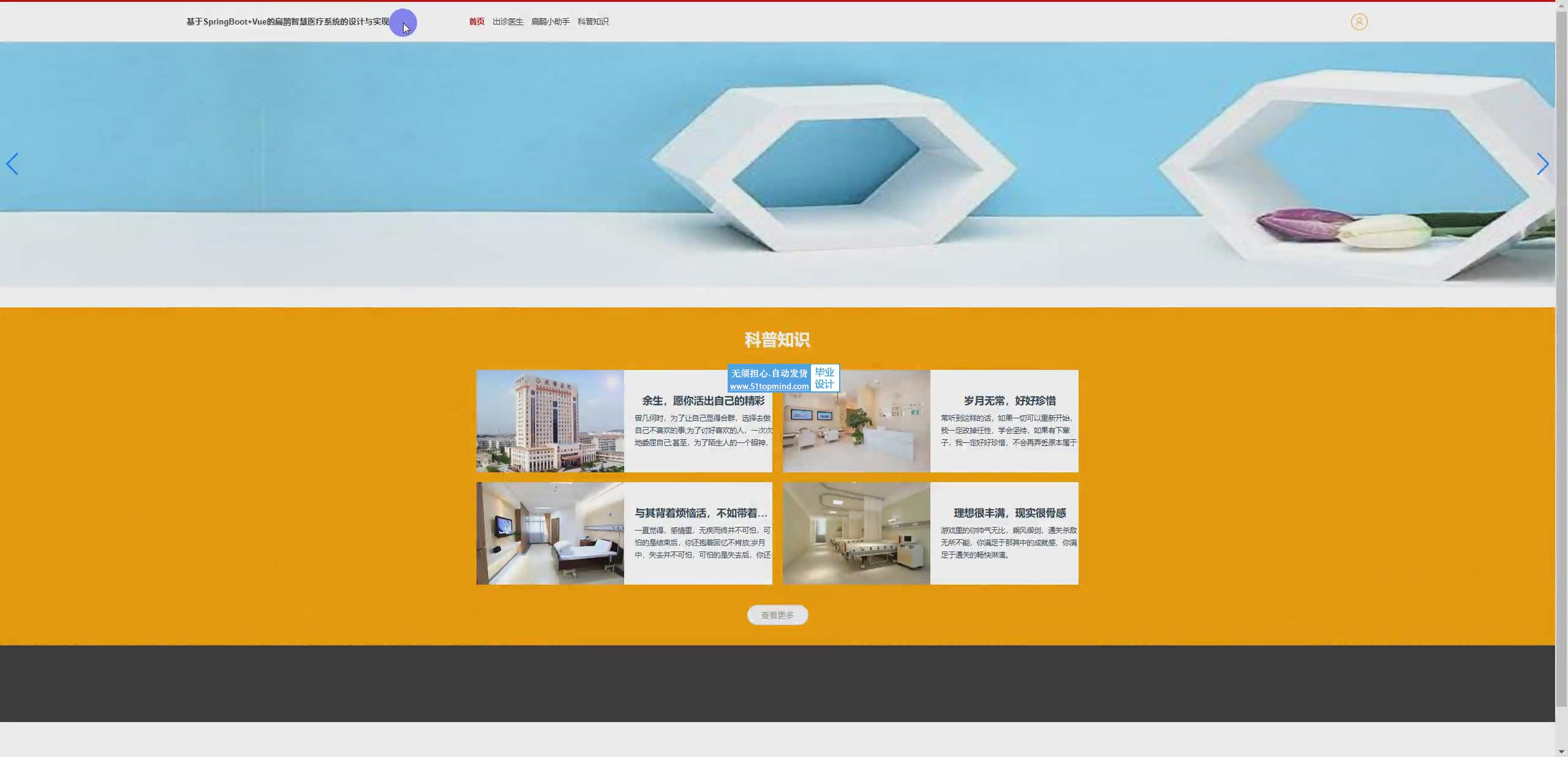 本系统基于Spring Boot框架构建后端服务,利用其强大的依赖注入与自动化配置特性,实现了高效、灵活的系统架构。前端采用Vue框架,通过组件化开发模式,提升了用户界面的交互体验与响应速度。数据库方面,采用MySQL存储系统数据,确保了数据的安全性与可扩展性。系统采用B/S架构,实现了跨平台访问,便于用户随时随地获取医疗服务。主要功能包括用户管理、在线预约挂号、电子病历管理、健康数据分析与报告生成、医生在线咨询等。通过整合Java后端开发、Spring Boot框架的便捷性、Vue前端的高效渲染以及MySQL数据库的稳定存储,系统实现了患者信息管理、医生排班与诊疗记录追踪等核心功能,为患者提供了个性化的健康管理服务,为医生提供了全面的患者数据视图。