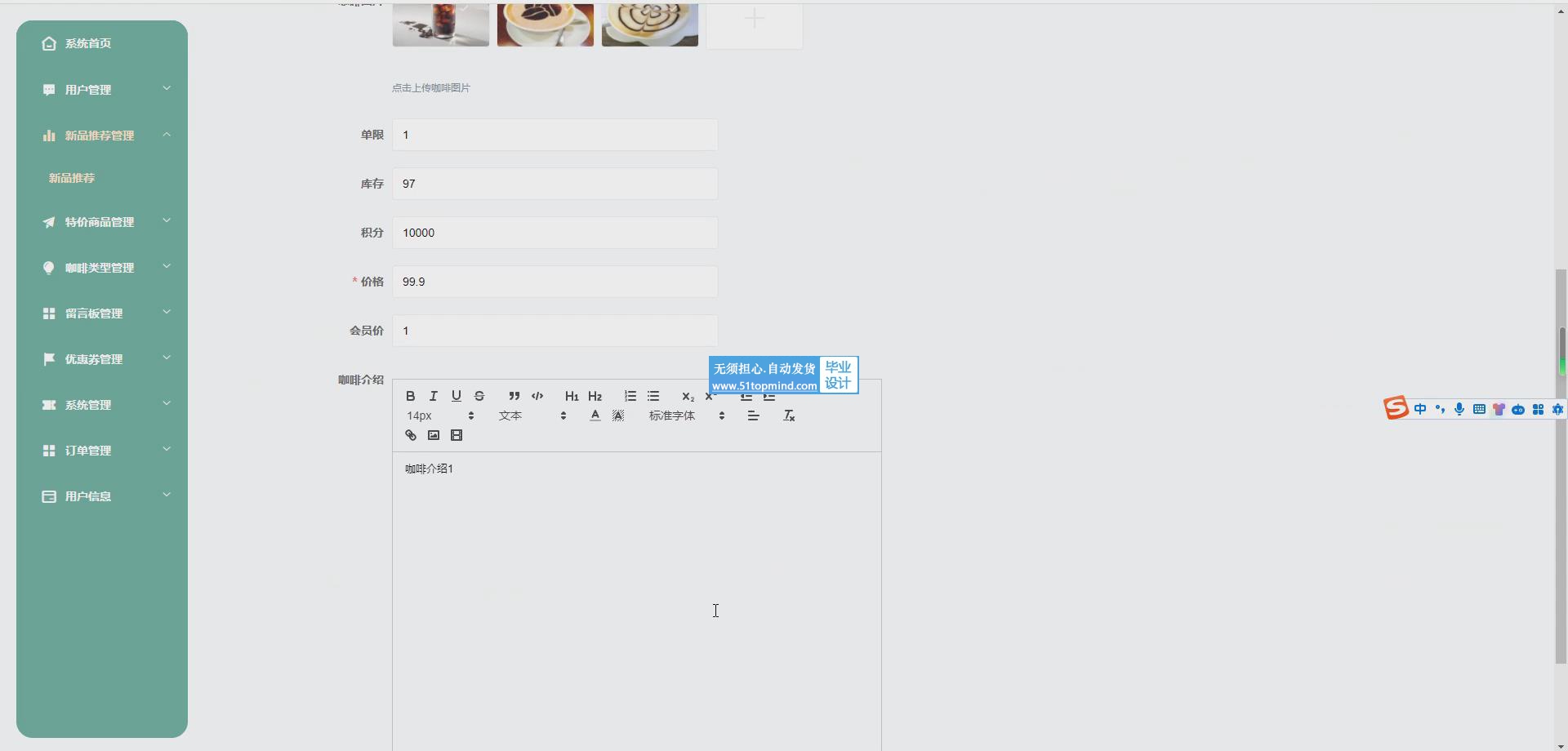 2. 平台咖啡店可以推广新品、特价商品,提高销售额。