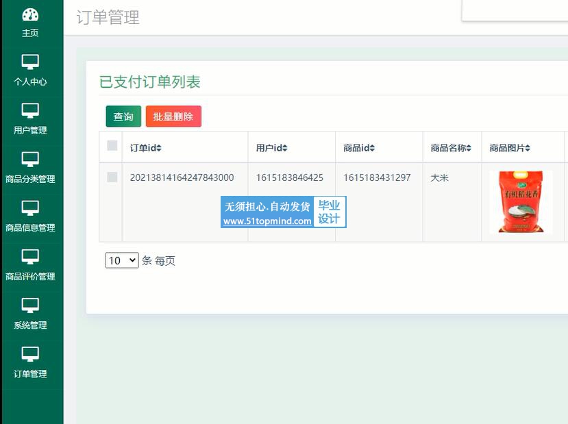 (4)订单管理:可以按订货人进行查看及删除订单;