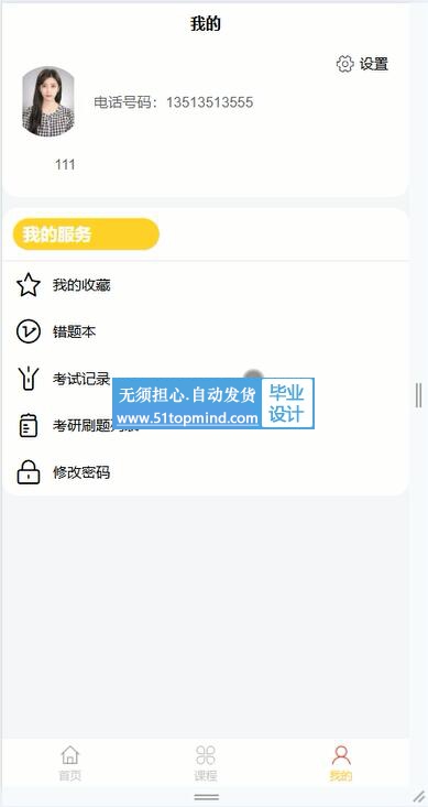 微信小程序的计算机考研刷题平台的开发,使游客可以在页面浏览首页、课程等各种信息,也可以注册成为平台用户[9]。用户具备信息查询、发布的功能,可以查询课程等信息,通过管理员的服务端审核之后,就可以展示在页面上。而管理员服务端则可以对所有的注册用户进行增、删、改、查、修改密码等基础操作。同时对于注册用户,课程、试题、考研刷题等可以进行修改、删除等操作[10]。