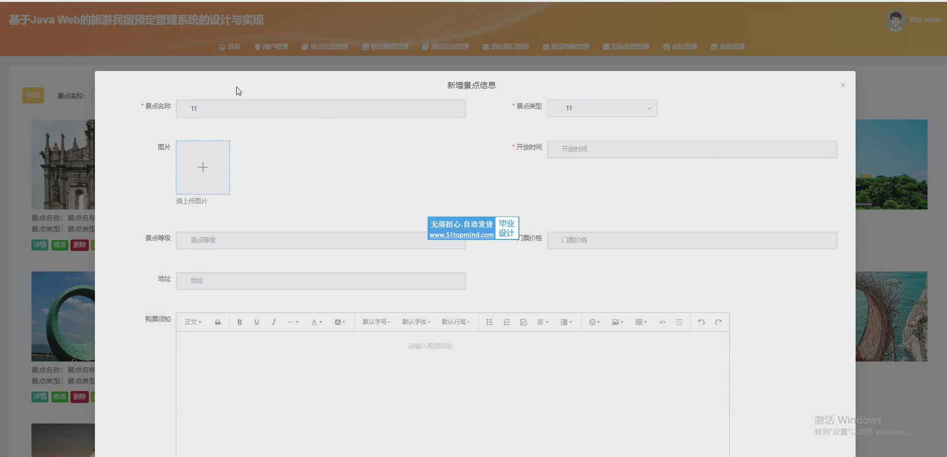 本毕业设计致力于开发一套基于Java Web的旅游民宿预定管理系统,旨在通过现代化技术手段优化传统民宿预订流程,提升用户体验和管理效率。系统采用Vue作为前端技术,结合Spring Boot框架构建后端服务,并以MySQL作为数据库支持,实现了用户与管理员的多角色功能。用户可通过系统浏览旅游攻略、景点信息、进行景点购票、查看民宿详情并完成预订,同时支持投诉反馈功能。管理员则可进行用户管理、景点与民宿信息管理、预订管理以及投诉反馈处理等操作。在系统开发过程中,完成了需求分析、系统设计、功能实现、测试与优化等关键环节,确保系统功能完善、性能稳定。通过模块化设计和分层架构,系统具备良好的可扩展性和可维护性,能够满足未来功能拓展和用户增长的需求。