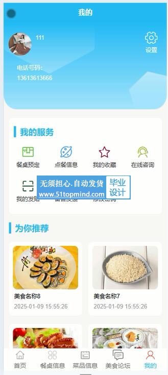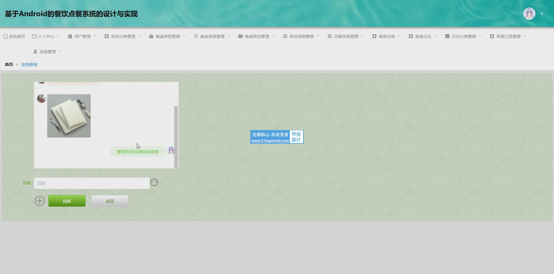 课题主要采用HBuilderX、springboot架构技术,前端以APP页面呈现给用户,结合后台Java语言使页面更加完善,后台使用MySQL数据库进行数据存储。餐饮点餐系统主要功能包括菜品分类、餐桌类型、餐桌信息、餐桌预定、菜品信息、点餐信息等管理功能,从而实现智能化的管理方式,提高工作效率。