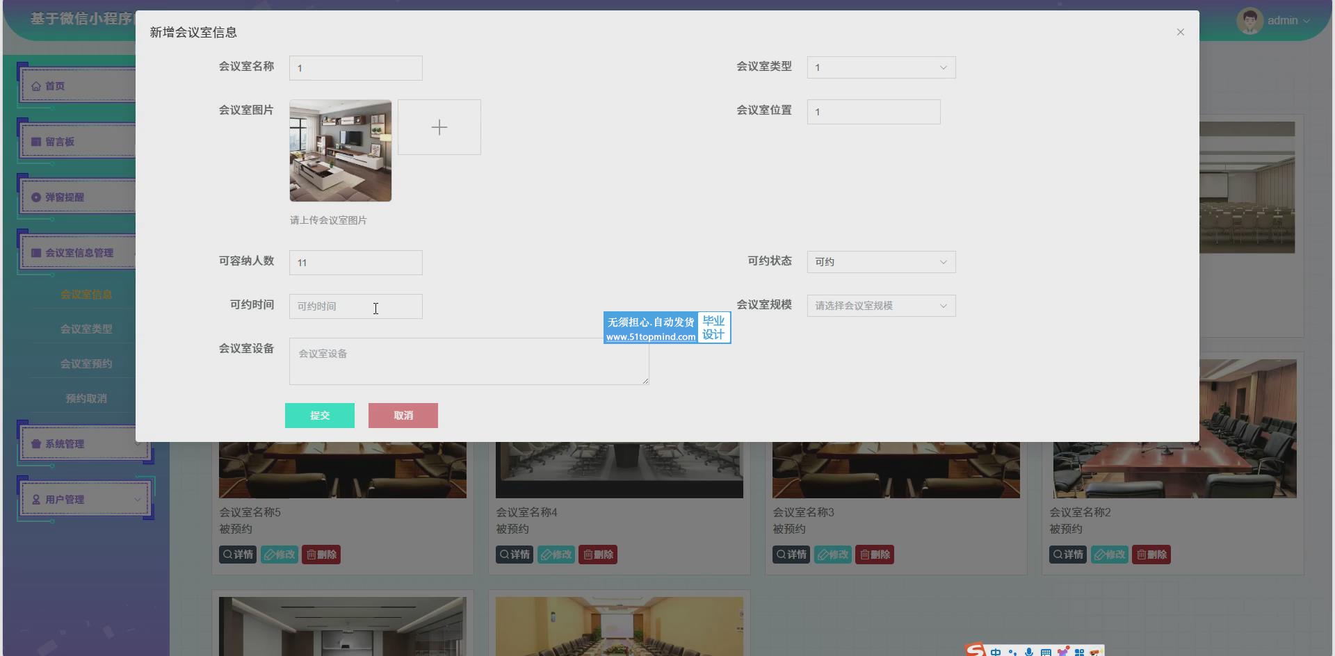 会议室管理:管理员可以新增会议室或编辑现有会议室信息。删除不再使用的会议室,删除前检查是否有未完成的预约。
