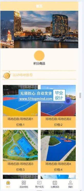 场地列表:展示所有可供租赁的运动场地信息,包括场地名称、位置、类型、价格等关键信息,方便用户快速筛选和选择。