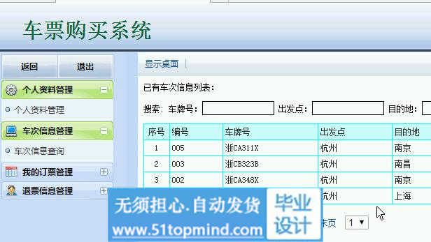 本车票购买系统是针对目前车票购买系统的实际需求,从实际工作出发,在分析以前车票购买系统中存在问题的基础上,结合管理信息系统开发的概念、结构及系统开发的基本原理和方法,并利用计算机运算速度快、存储信息容量大、处理逻辑问题强、功能强大的优势,采用目前最流行的B/S结构和JSP中流行的MVC三层设计模式。本车票购买系统主要包括“登录模块”、“系统用户管理模块”、 “车次信息管理模块”、 “订票信息管理模块”、 “系统管理模块”等多个模块。它帮助车票购买系统实现了信息化、网络化,通过测试,实现了系统设计目标,相比传统得管理模式,本系统合理的利用了车票购买数据资源,有效的减少了车票购买系统的经济投入,大大提高了车票购买系统的效率。