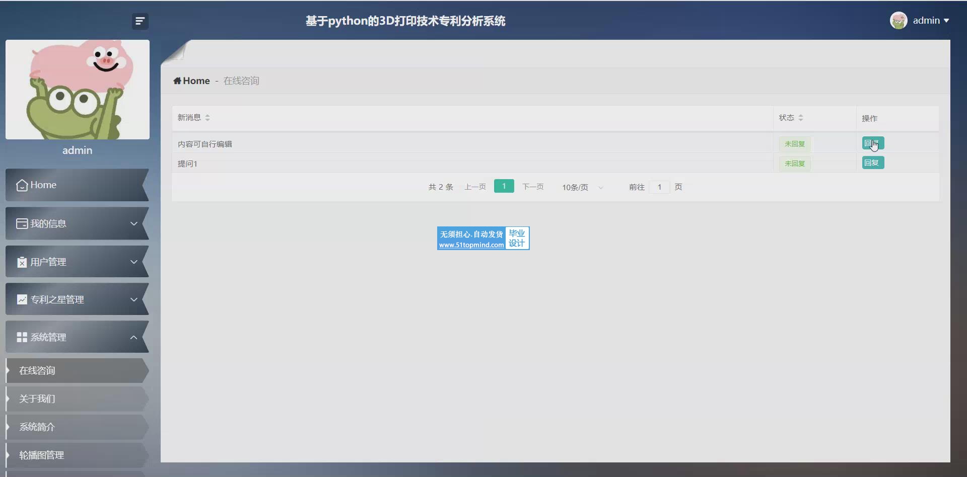 在线咨询:提供在线咨询功能,用户可以通过系统咨询专利相关问题。