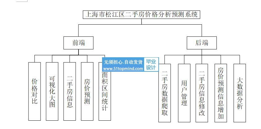 本系统具备全面的功能,前端实现价格对比、可视化大图展示、二手房信息查询、房价预测以及面积区间统计,为用户提供直观、便捷的市场分析工具。后端负责二手房信息数据爬取,确保数据实时更新;同时支持用户管理,包括注册、登录与权限分配;提供二手房信息修改功能,保障数据准确性;增加房价预测信息,丰富用户参考内容;并进行大数据分析,生成深度统计报告,为决策提供数据支持