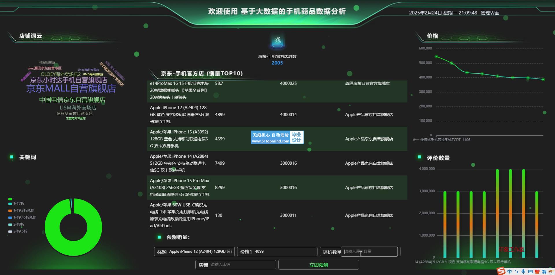 手机统计图:提供店铺词云图,展示不同店铺在手机市场中的影响力和关注度。提供关键词占比饼图,分析用户在手机搜索和购买过程中关注的关键词和热点。提供价格曲线图,展示手机价格在不同时间段的变化趋势。提供评价数柱状图,反映不同手机型号的用户评价和关注度。