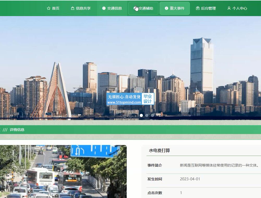 利用网络进行信息管理改革已经成为了人们追捧的一种趋势[2]。“ 信息平台”是运用java语言,Spring Boot框架,以Mysql数据库为基础而来发出来的。为保证我国经济的持续性发展,必须要让互联网信息时代在我国日益壮大,蓬勃发展,一个好的信息平台,方便员工通过注册登录到网站查询信息共享、交通信息、交通辅助、重大事件,修改个人信息等,管理员对信息进行维护与管理,还能帮助工作者从琐碎冗杂的日常管理事务中解放出来,更专心投入在其它事务上,因而能更好的履行它自身的社会责任,这个 信息平台也就间接地为美好社会的创建出了一份力[3]。所以 信息平台的设计和实现是必要的也是很有意义的。随着我国社会的发展,人民生活质量日益提高。于是对系统进行规范而严格是十分有必要的,所以许许多多的信息管理系统应运而生。此时单靠人力应对这些事务就显得有些力不从心了。所以本论文将设计一套信息平台,帮助交通局进行信息共享、交通信息、交通辅助等繁琐又重复的工作,提高工作效率的同时,也减轻了管理者的压力。
