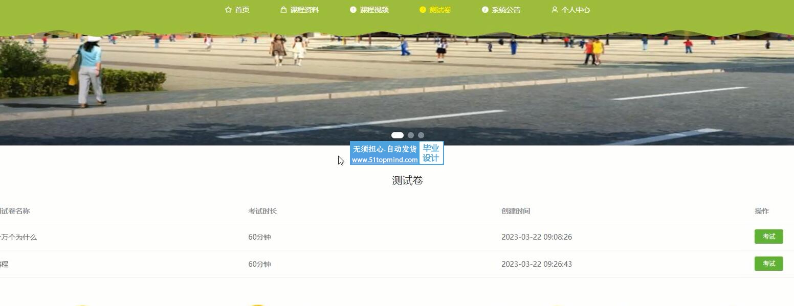 (C) 学生;进入系统可以实现首页、课程资料、课程视频、测试卷、系统公告、个人中心等功能进行操作。学生用例图如图3-3所示。