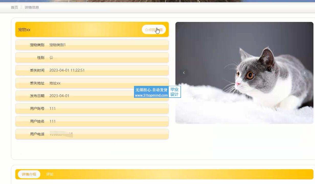 宠物领养救助平台采用B/S架构,数据库是MySQL。网站的搭建与开发采用了先进的java进行编写,使用了springboot框架。该系统从两个对象:由管理员和用户来对系统进行设计构建。主要功能包括:个人信息修改,对用户、宠物类别、宠物招领、领养申请、宠物认领、宠物论坛等功能进行管理。本系统在一般宠物领养救助平台的基础上增加了首页推送最新信息的功能,方便用户快速浏览,是一个高效的、动态的、交互友好的宠物领养救助平台。