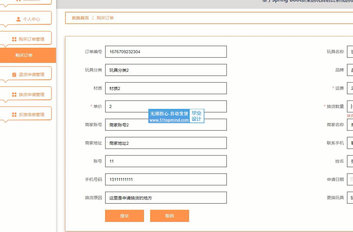 本文通过采用B/S架构,MySQL数据库以及java语言、springboot框架,结合国内线上管理现状,开发了一个基于springboot的玩具销售系统。系统分为多个功能模块:买家、厂商、玩具分类、玩具信息、购买订单、退货申请、换货申请、反馈信息、生产信息、批发订单等。通过系统测试,本系统实现了系统设计目标,相对于人工管理方式,本系统有效的减少了商家的经济投入,并且大幅度提升了玩具销售管理的效率。