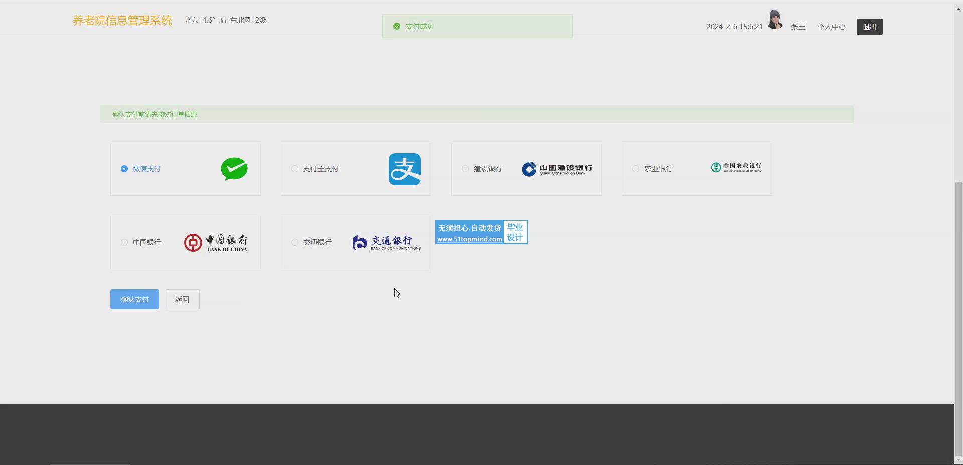 我们实现了系统的高效稳定开发。具体来说,我们主要实现了对管理员、老人和护工三个权限的管理,主要功能包括对老人、护工、健康新闻、新闻类型、护理标准、床位信息、入住信息、事故登记、外出登记、来访登记、费用信息、每日健康、用药记录、膳食信息、病历信息、问卷调查、满意度调查、系统管理、个人资料等进行管理。