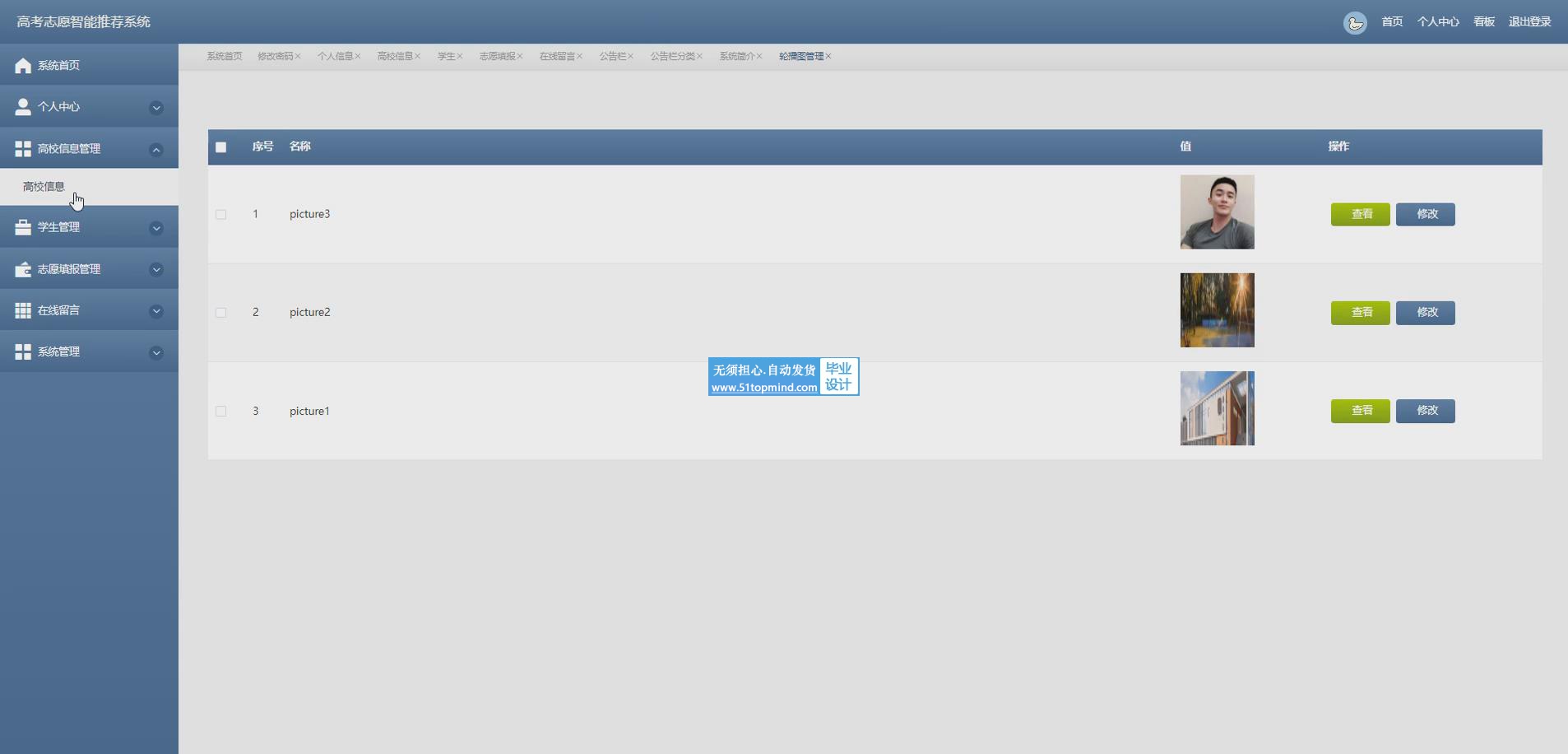 关键词:高考志愿 MYSQL数据库 Java技术 SPRINGBOOT框架