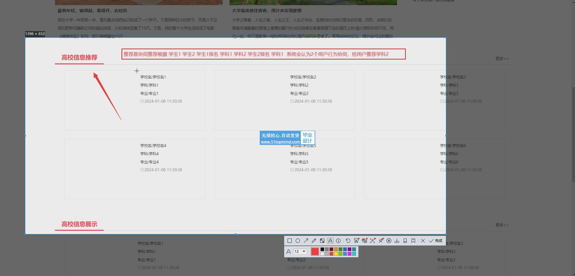 本篇文章使用Java与MYSQL技术搭建了一个高考志愿智能推荐系统。首先,对用户提出的功能进行合理分析,然后搭建开发平台以及配置计算机软硬件;通过对数据流图以及系统结构的设计,创建相应的数据库;进行详细的设计,实现主要功能。最后测试网站,并分析测试结果,完善系统,得出系统使用说明书,方便日后的维护以及更新。