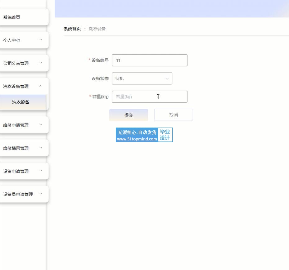 本系统共包含23个表:分别是操作员表,操作员申请表,配置文件表,订单信息表,公司公告表,购买卡券表,客户表,客户等级表,在线留言表,公告信息表,设备申请表,设备员表,设备员申请表,token表表,用户表表,维修结果表,维修申请表,洗衣服务表,洗衣设备表,洗衣小贴士表,洗衣信息表,优惠卡表,支出信息表等信息表 加方便快捷,为此我开发了本次的基于vue洗衣店管理系统